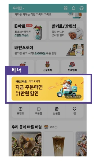 앱 화면 속 광고. 유저는 보기 싫은데 우리는 보여주고 싶어서
