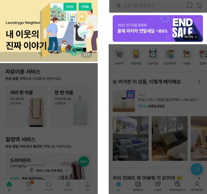 여러 앱을 리서치해보면 본문에 소개된 것 외에도 정말 다양한 형태의 배너가 존재합니다. 캐러셀 기능과 인디케이터도 참 다양하게 구현되어 있습니다. 그만큼 수많은 기획자, 개발자, 디자이너들이 유저는 보기 싫지만 우리는 보여줘야 하는 난제를 풀고 있는 것 같습니다. 언제나 그렇듯 정답은 없고, 앱의 특징과 목표에 맞는 형태를 골라쓰는 게 바람직합니다.