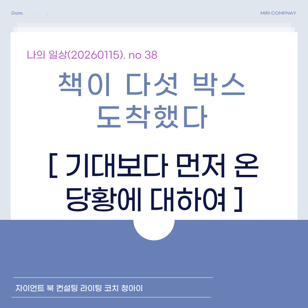1장을 다 읽고 고개를 들었다. 거실에 있던 다섯 박스가 두 박스로 줄어 있었다. 남편에게 책을 어디에 두었느냐고 했다. 딸 방 책상 밑에 넣어 두었다고 했다. 내 책 세 박스가 딸 방 책상 밑으로 치워져 있었다. 난 거실에서 더 두고 싶었다. 예쁜 상자도 아니었다. 부피도 적지 않았다. 베스트 셀러가 될 책도 아니다. 하지만 난 나의 책을 나의 곁에 두고 더 보고 싶었다. 같이 기뻐해 주지 않아도 괜찮다고 스스로 설득했다. 책을 낸 일은 결국 내가 혼자 감당해야 할 일이었다.