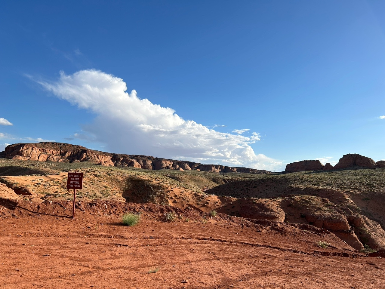 캐년 안에서의 사진 찍기가 끝나고 안내원을 따라 캐년의 위쪽 들판을 잠시 걸었다. 이 들판 밑에 캐년이 있다. 저 사진의 언덕에 뚫린 작은 구멍이 캐년을 비추는 빛의 향연의 원천인 듯 싶다.