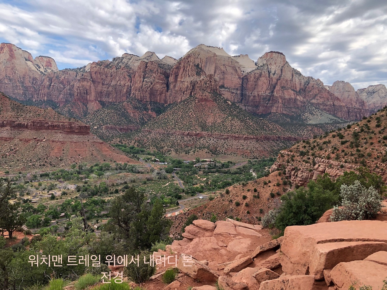 스프링데일 마을에 있는 호텔에 체크인한 후 해가 많이 남아있어서 워치맨 트레일을 걷기로 했다.