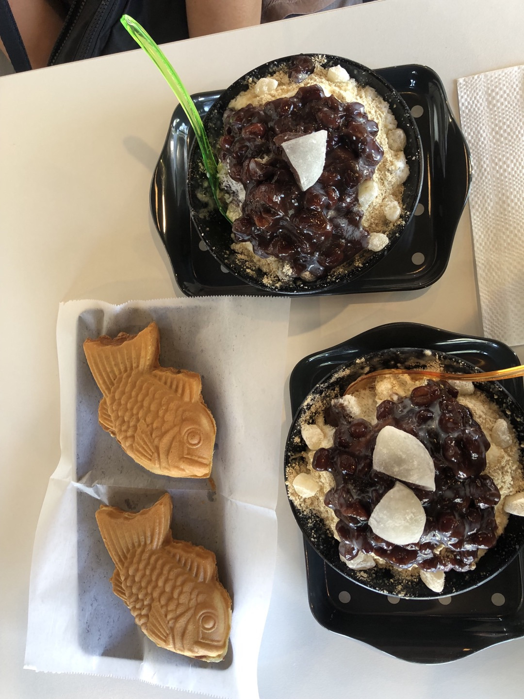 미국식 과일 빙수와 한국 전통식 팥빙수 중 무엇을 택하겠느냐는 말에 주저 없이 한국식 팥빙수를 선택하였다. 20분이나 자동차를 달려 찾아 간 팥빙수 가게. 눈같이 부드러운 촉감의 살살 녹는 빙수 위에 넉넉히 얹힌 팥과 미숫가루, 떡 조각. 바삭하게 구워진 붕어빵도 한 마리씩 곁들였더니 배가 가득 찼다.