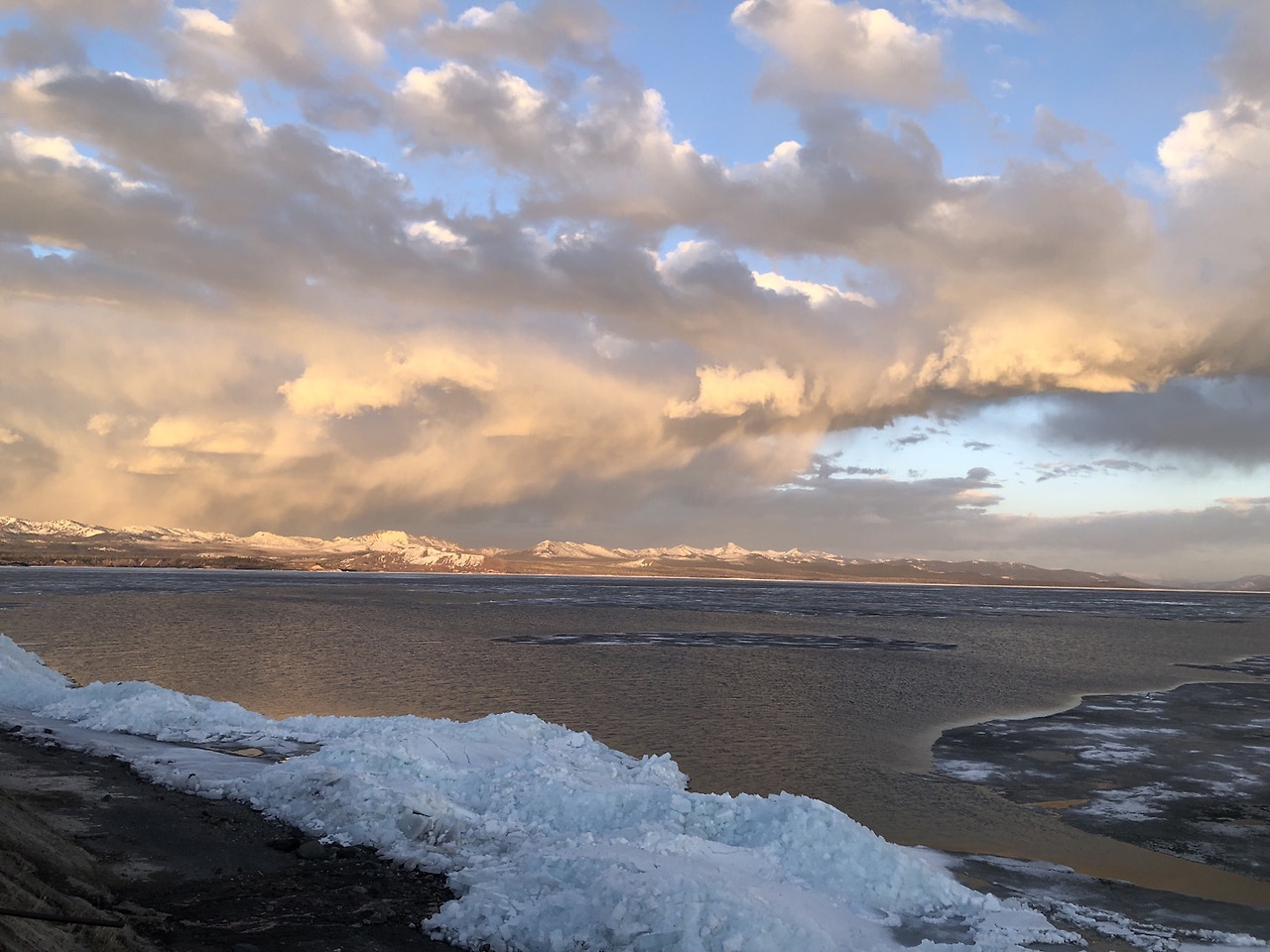 신기한 쇼가 끝난 후 숲길을 달려 호텔에 도착했다. 호텔 바로 앞에 넓은 옐로스톤 호수가 펼쳐져 있다. 해지는 호숫가에서 붉게 비치는 구름과 아직 남아있는 호수 가장자리 하얀 얼음들을 감상하다 추위에 몸을 떨며 체크인을 하러 로비로 들어섰다. 이틀 밤은 이곳 호텔의 캐빈형 숙소에서 머물 예정이다. 동생은 언젠가 이런 캐빈에서 하룻밤 자보고 싶었다며 즐거워했다. 내부는 상당히 편안하고 깨끗하게 꾸며져 있었지만 외풍이 상당하다. 난방을 좀 세게 틀어야 했다. 고지대라서 춥기도 했을 것이다. 짐을 풀다 보니 기압이 낮아서 팽팽하게 부푼 과자 봉지에 웃음이 터졌다. 엘로스톤 안에서는 인터넷 사용이 어렵다. 호텔 메인 빌딩 로비에 가야 약하게 전파를 잡을 수 있다. 원시의 땅에 가까운 곳이니 와이파이 없이 며칠 지내는 것도 나쁘지 않을 것 같다.
