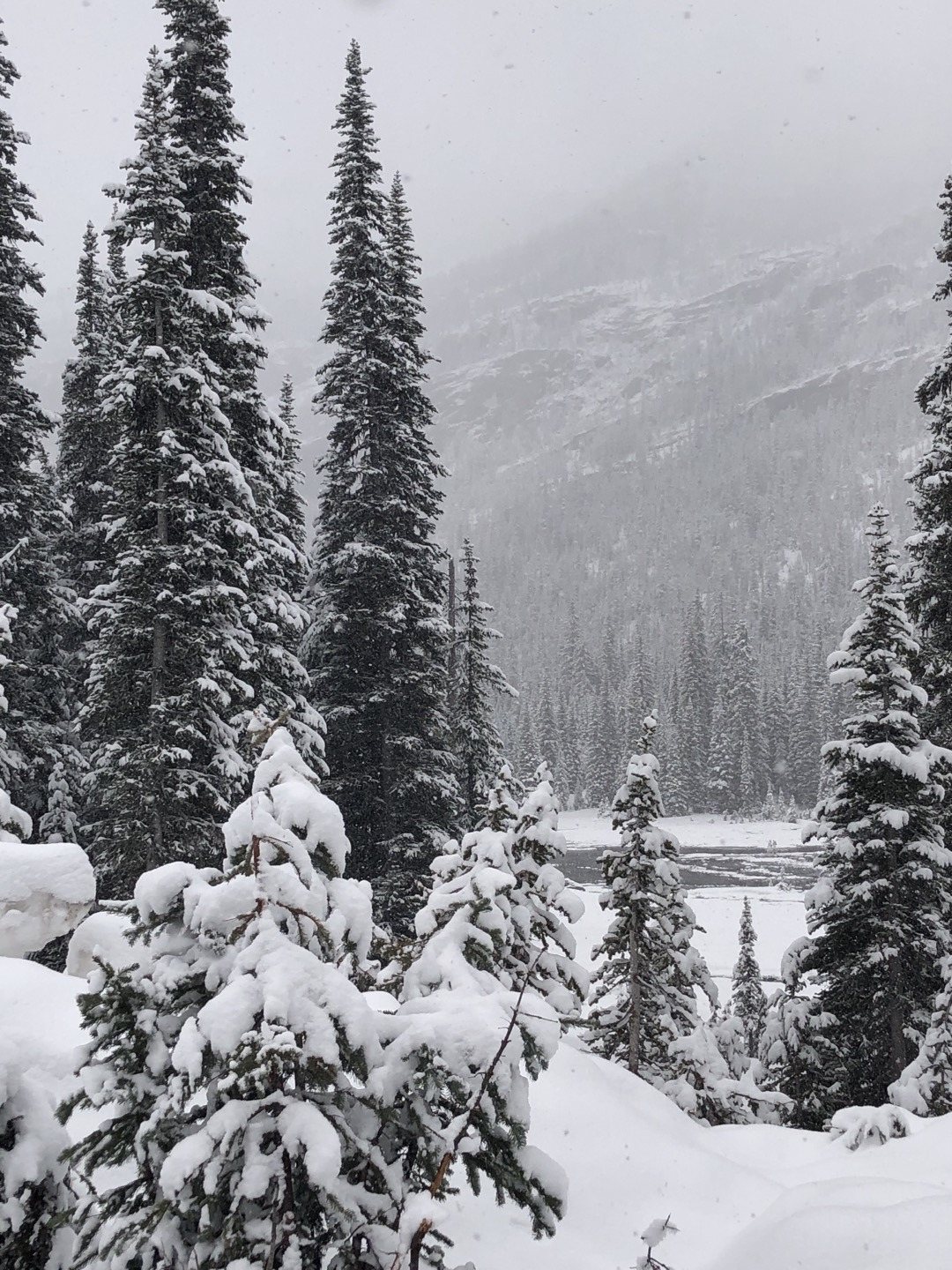 산악지대에 들어서자 본격적으로 비가 내리기 시작한다. 우리는 동쪽에서 서쪽으로 가는 노스 캐스케이드 Loop(주요 관통로)를 통과하며 그 길 주변에 있는 로스 레이크Ross Lake와 디아블로 인공호수Diablo Lake를 구경하기로 했다. 우림 지대의 숲답게 키 큰 침엽수들이 하늘을 찌를 듯 치솟아 있다. 고도가 높아지자 비가 눈으로 바뀌더니 순식간에 소복하게 눈이 쌓인 삼나무들이 길가에 늘어서 있다.
