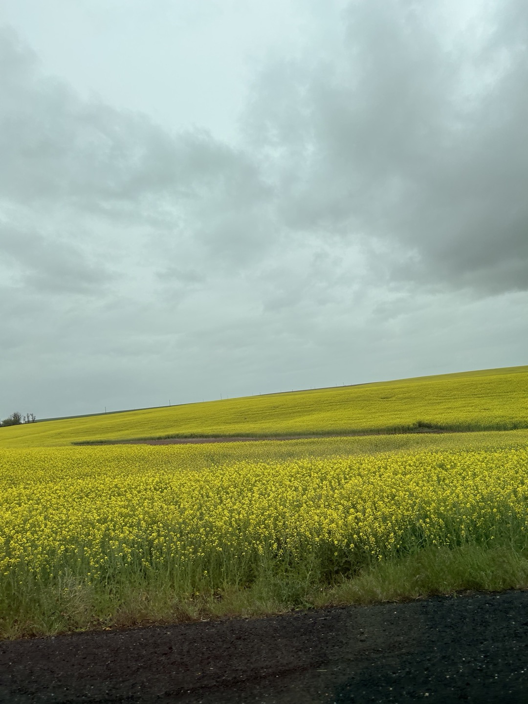 언제부터인지 구릉지대를 벗어나 더 넓은 초원지대를 달리고 있다. 길가에는 노랗게 핀 유채밭이 끝없이 펼쳐져 있다. 몇 분을 달려도 계속되는 유채 밭이 여기저기에서 눈길을 사로잡는다. 원래 가축들의 먹이로 쓰였다는 유채꽃에서 사람들은 언제부턴가 식용유를 뽑아내고 있다. 카놀라유는 오메가 3도 많고 발화점이 높아서 튀김이나 볶음 요리에 좋고 건강에도 좋다고 알려져 있다. 다만 산화가 잘되기 때문에 한 번 쓰면 반드시 버릴 것을 권한다. 캐나다의 특산물이라고 하는데 몬타나에서도 이렇게 많이 재배하고 있는지 몰랐다. 밭 한쪽에서 유채꽃을 뜯어먹고 있는 소들이 눈에 띈다. 행복한 놈들이다.
