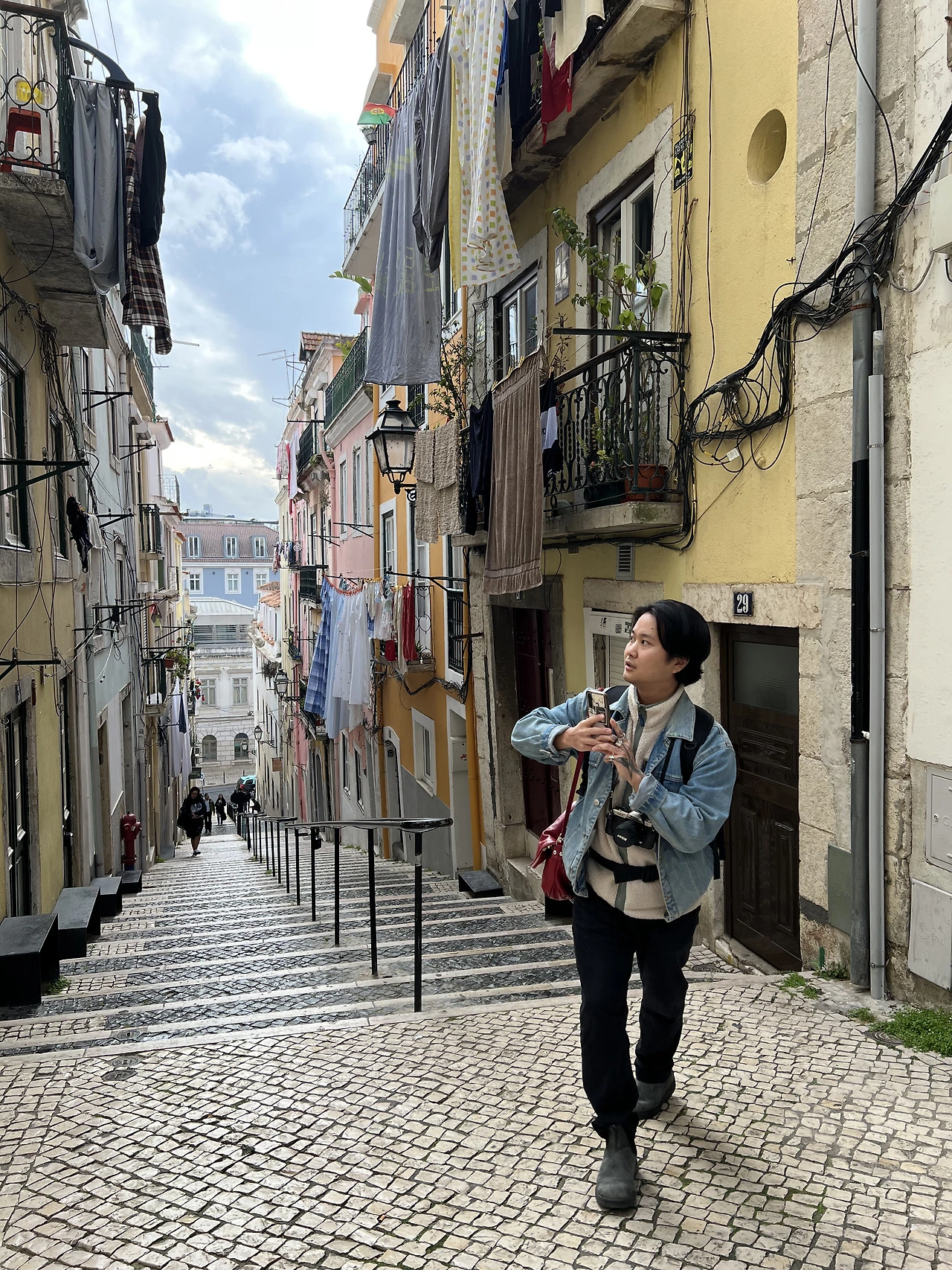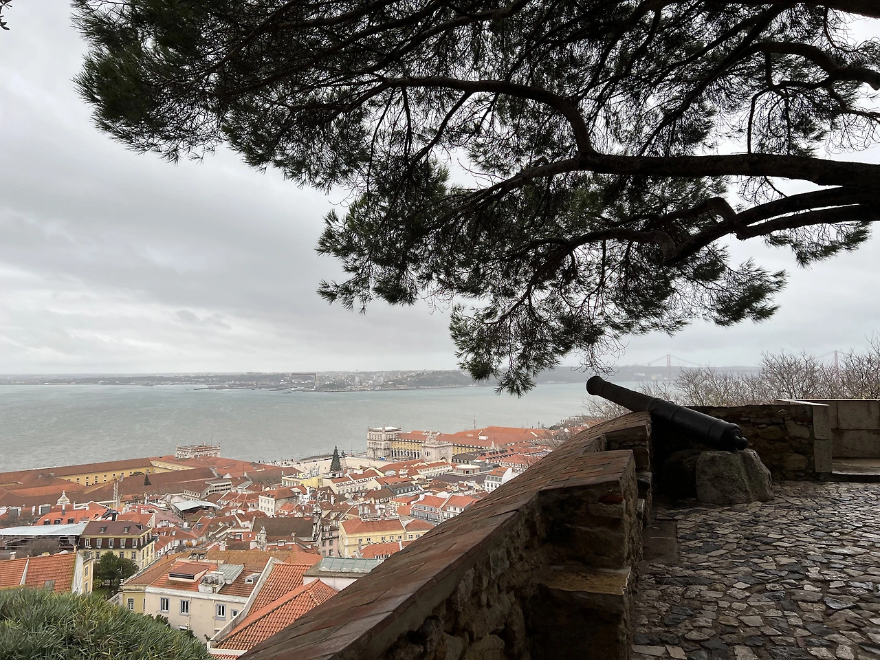 그 골목길 양 옆으로 옅은 파스텔 색의 개성 있는 건물들이 19세기쯤으로 시간 여행을 한 것처럼 느끼게 한다. 벽에 그려진 낙서와 우중충한 하늘 아래 베란다 밖에 걸려있는 빨래들이 영화의 한 장면 같기도 하고 그 오래된 건물에 아직도 사람들이 살고 있다는 것을 실감하게도 만드는, 현실과 환상이 공존하는 것 같은 거리 풍경이 눈 돌리는 곳마다 펼쳐진다. 헉헉거리며 알칸타라 전망대에 오르자 눈 아래 붉은색 지붕과 하얀 벽의 건물들이 아름답게 펼쳐졌다. 멀리 생 조르주 성도 보였다.