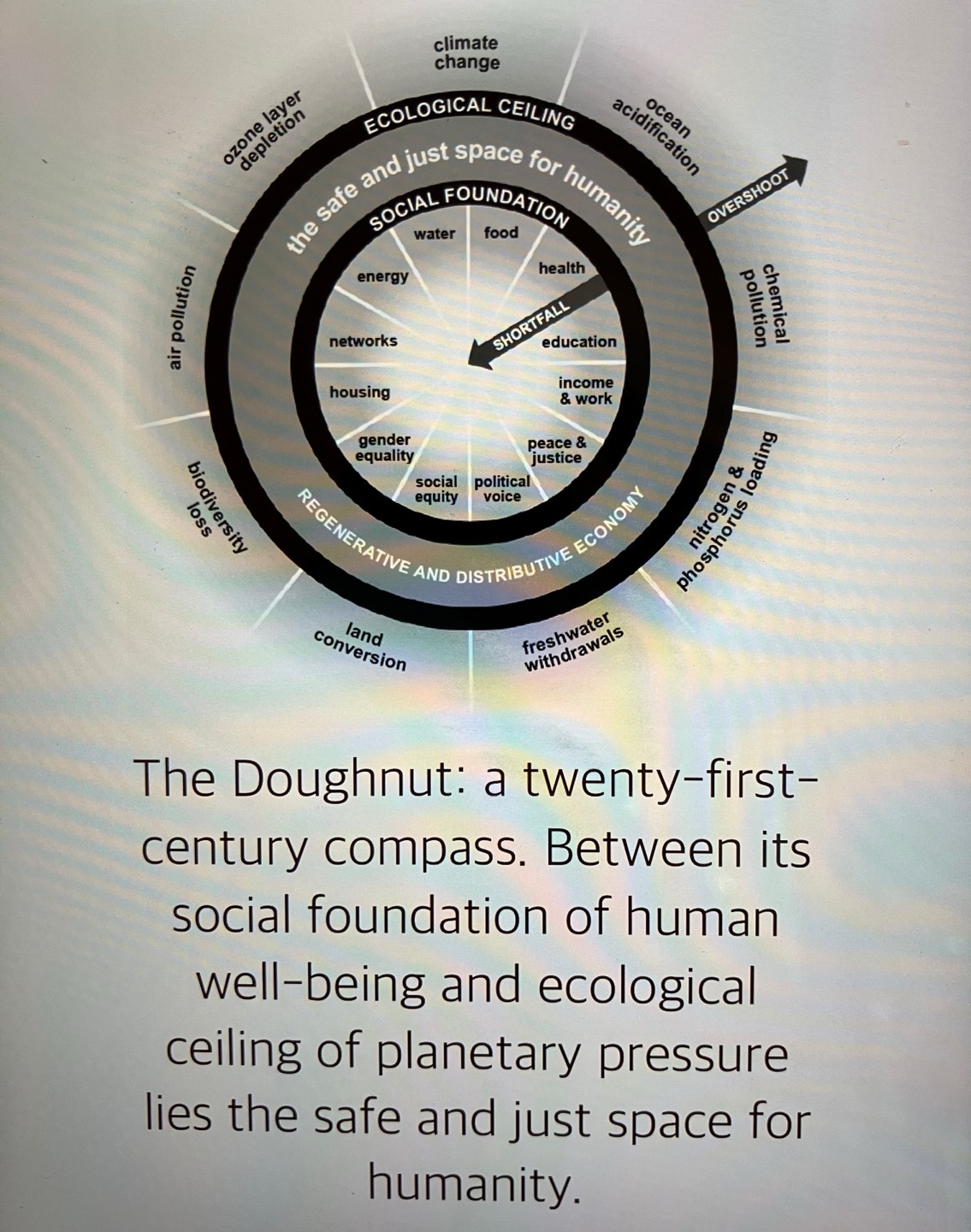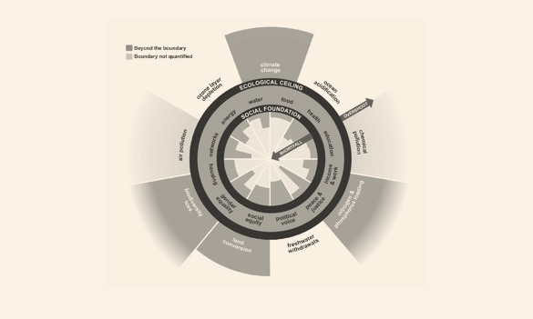 이 도넛을 구성하는 각 요소들의 현재 상황을 도표로 표시함으로써 인류가 안전한 생존 공간을 확보하기 위해 즉 도넛의 안쪽에 위치하기 위해 씨름해야 할 문제들의 종류와 강도를 한눈에 알 수 있다.