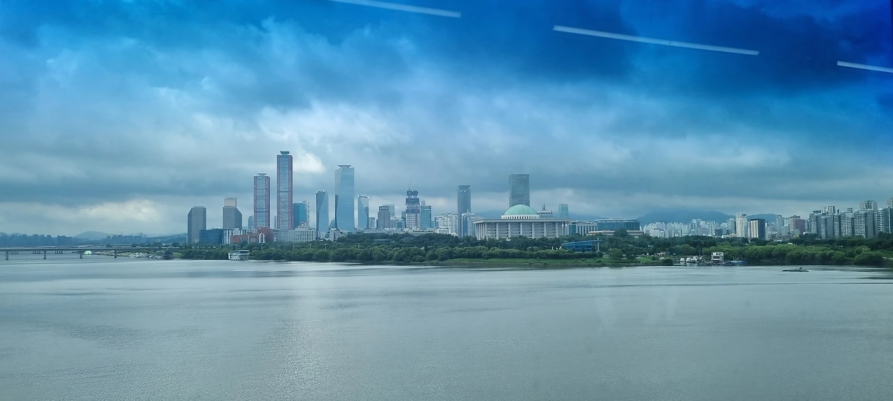 그렇게 오늘도 앞선 타인의 뒤꽁무니를 아무 생각 없이 따라가다가 갑자기 탁 트인 시야에 거대한 도시가 한눈에 들어왔다. 마치 수상도시처럼 도시가 물 위에 기둥을 세우고 서 있는 모습이 이질적으로 느껴진다. 그 풍경만으로도 오늘 하루치 행복이 소복이 쌓이는 느낌이다. 거대한 저 물결을 따라 잠시 바다로 나아가본다. 지하를 벗어나 커다란 강 위를 달리는 열차 안에서의 2분이 반복되는 지루함에서 벗어나게 해 준다.