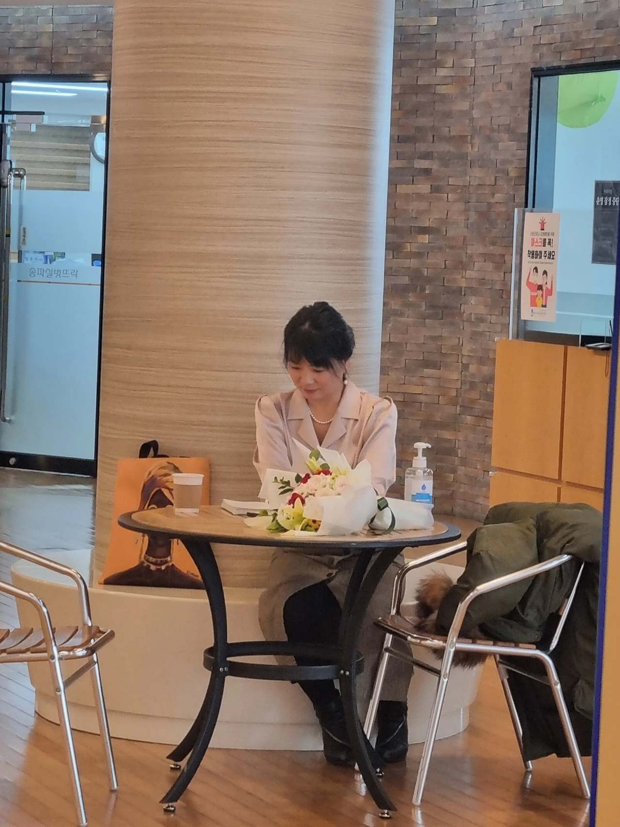 오래간만에 화장을 하고 어제 산 블라우스도 입고 앉아있으니 작가분이냐고 물어오는 분들이 많았습니다.