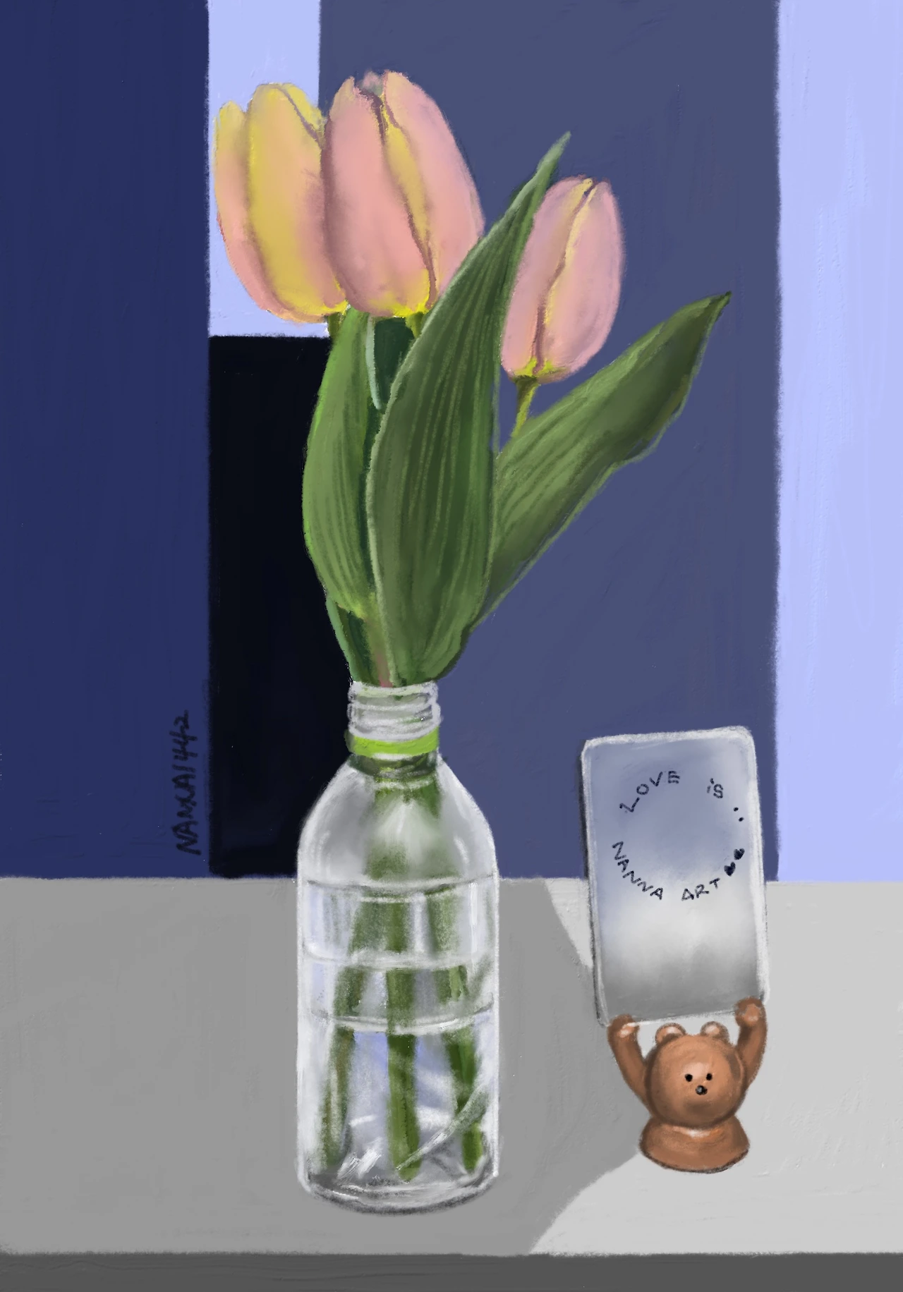 여행 동안 계속 머릿속으로 그렸던 50호 그림을 그리고 주인 없이 집에 먼저 와 있던 냉장고 자석과 거울을 정리해 놓았습니다. 갤러리에서 2월 19일부터 전시를 해도 된다는 연락을 주셔서 시작이 조금 앞당겨지는 행운도 얻었습니다. 그렇게 작은 걸음이 하나하나 모여서 '오늘을 사는 나', <난나 아트>의 역사가 되리라 믿어봅니다.