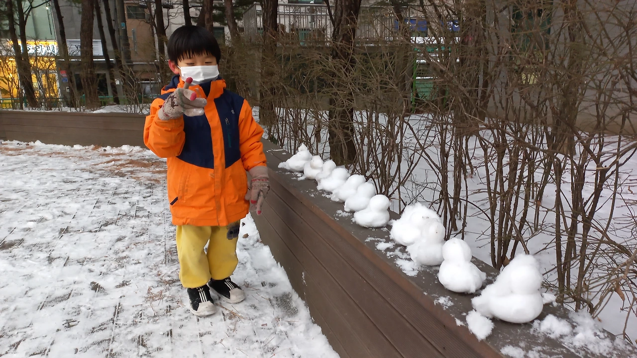 여기저기서 아이들이 앙증맞은 눈오리를 만들고 있었다.