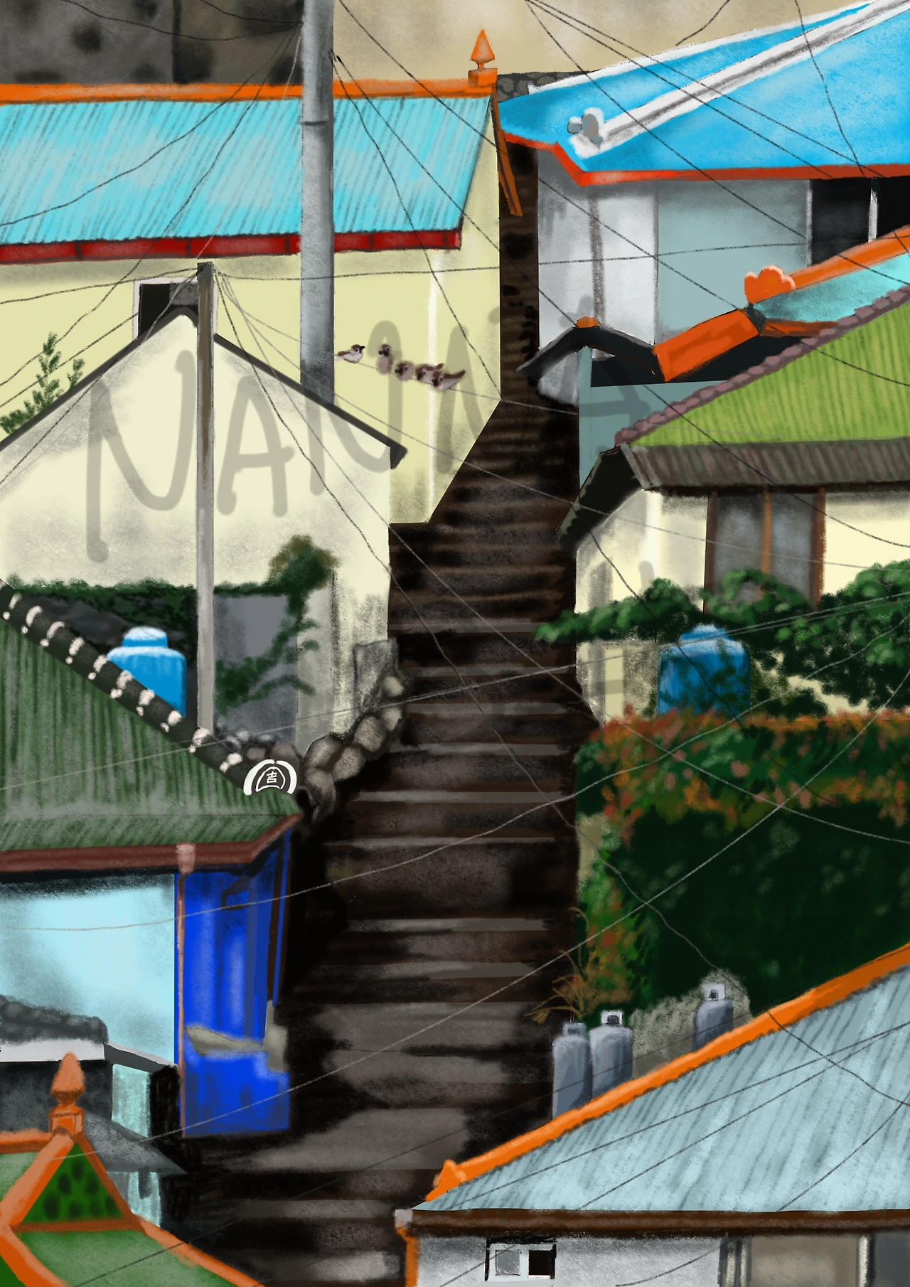 비탈진 언덕 위에 길을 내고 사람들이 살아가는 마을.