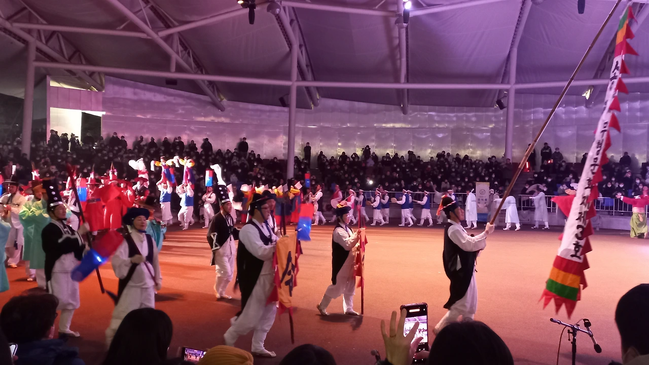 경기민요 공연과 다리밟기 공연을 보고 소원나무에 불을 붙이고 태우는 달집 태우기도 했습니다.