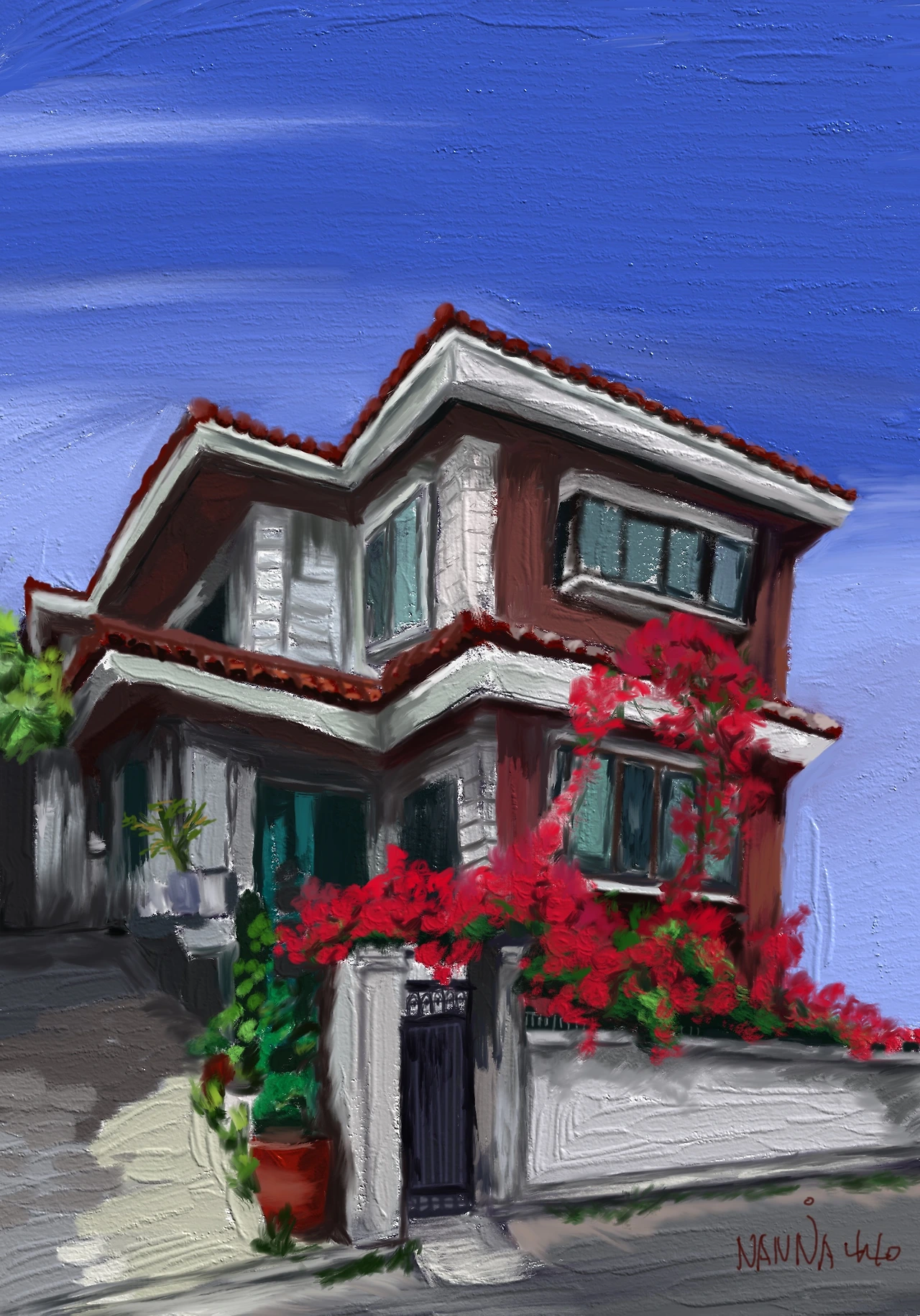 오늘 그림은 아이들을 데려다주고 돌아오는 길에 마주친 이웃집입니다.