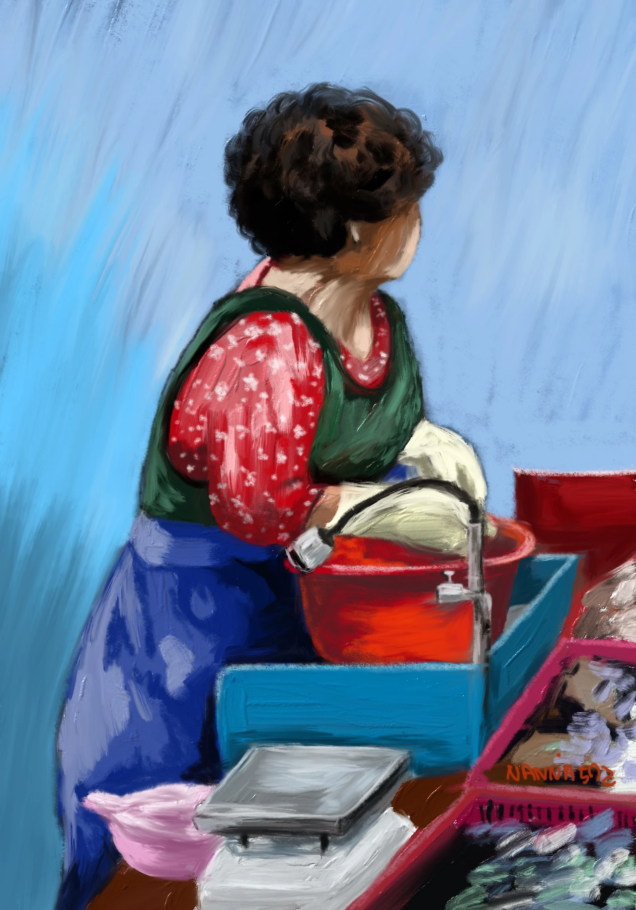 좁은 시장 길 양옆으로 싱싱한 활어들이 펄떡대며 줄지어 있었다. 앉은뱅이 의자에 도마 하나 끼고 어찌나 재빠르게 생선을 손질하던지 넋을 잃고 바라보게 된다. 식구들 좋아하는 종류로 이것저것 고르면 어느새 아이스 박스 가득 횟감이 차오르고 서울에서 배불리 먹어본 적 없던 회를 배가 터지도록 먹고 먹어도 다 먹지 못하고 남겼었다. 골목골목 젓갈이 맛있는 집, 김이 맛있는 집을 수소문해서 서울 갈 때 바리바리 싸 오곤 했는데 올 추석엔 다른 때보다 한가한 시장에 건어물 시장은 문을 닫은 곳이 많았다. 일본 원전수 방류로 모두들 해산물을 경계하게 된 탓인지 공용주차장도 무료개방하고 생산회 양도 다른 때보다 더 많았는데도 왠지 물 빠진 바닷가를 걷는 것처럼 한산하고 쓸쓸한 느낌이었다. 회를 좋아하는 시댁식구들도 이번이 마지막 회 잔치일 것 같다고 말했다.