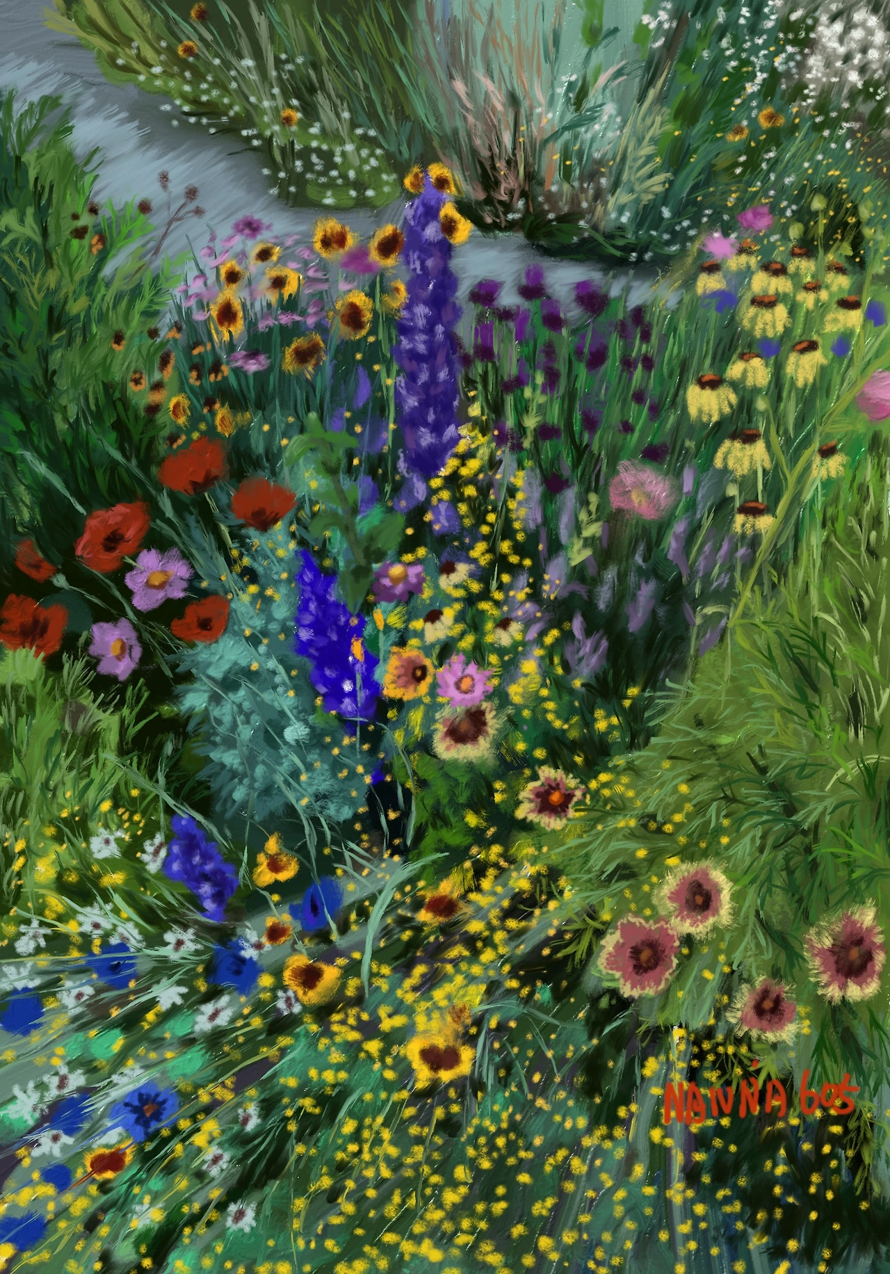 매일 어떤 그림을 그릴까 고민하는데 오늘은 들판에 야생화가 마음에 들어왔다. 많은 생명들이 저마다 피어 제각각의 삶을 살아가지만 멀리서 조망하면 그것이 번잡스럽거나 엉성하지 않다. 일상의 모든 것들이 하나하나 그 자리, 그곳에서 벌어지고 존재하고 있음으로 저 황량한 들판이 풍성하고 아름답게 보인다고 생각한다. 내가 지금하고 있는 질문과 고민들도 내 삶의 언덕에 서로 다른 꽃으로 피어 조화를 이룰 것이라 믿어본다.