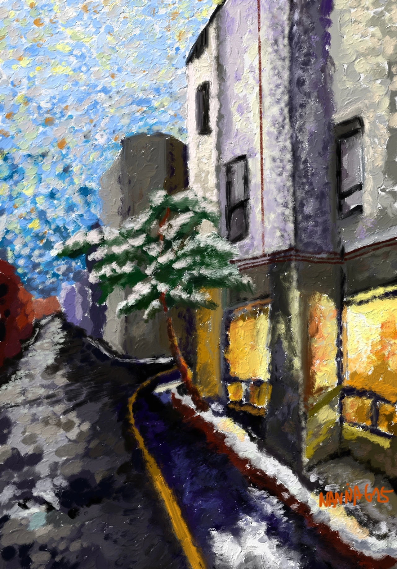함박눈이 내린 다음날, 날이 너무 포근해서 눈은 거의 녹고 해가 잘 들지 않는 그늘에 엉성하게 남은 것들은 초라해 보입니다. 이른 저녁, 공방에 노란빛 불이 켜지고 건물을 지키는 커다란 소나무가지에 앉은 눈이 어제의 눈부셨던 함박눈을 기억하고 있었습니다. 언제나 축제가 끝나고 난 후가 가장 공허하고 쓸쓸한 것 같습니다. 그래도 어제의 눈이 녹아 땅이 촉촉해지고 말랑해진 걸 보면 그 안의 봄의 씨앗들이 무사히 뿌리를 내리고 싹을 틔울 수 있을 것 같습니다. 땅 속에서 꿈을 꾸는 모든 생명이 태어나는 봄은 또 얼마나 아름다울까요. 새로운 축제에 대해 기대하게 되는 저녁입니다.