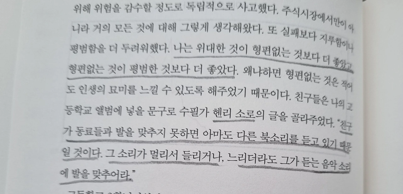 그 소리가 멀리서 들리거나, 느리더라도 그가 듣는 음악소리에 발을 맞추어라."
