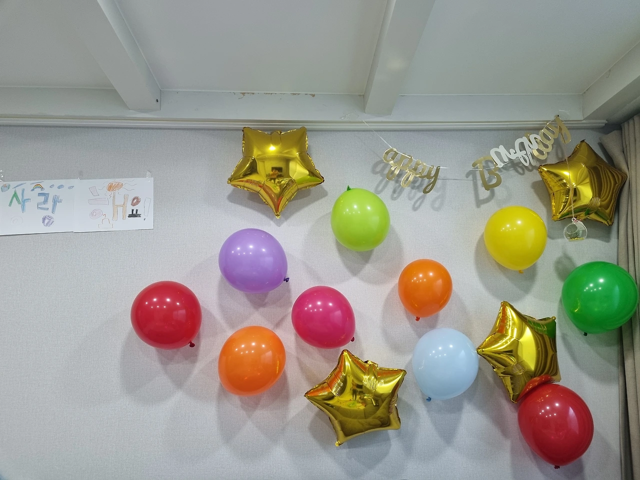 아이들과 장식한 풍선들