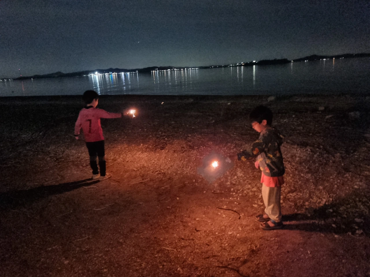 밤이 되자 북적이던 사람들은 모두 집으로 돌아가고 작디작은 집 하나, 백사장 한편에 세워둔 채 밤바다에 불꽃을 피웠습니다. 잔잔한 파도소리, 아직 주위를 배회중인 갈매기 소리 이외에는 밤을 방해하는 무엇도 없었습니다. 도시에서 느끼지 못한 생생한 밤을 느끼며 작은 불 밝혀 이 밤을 기억해 봅니다.