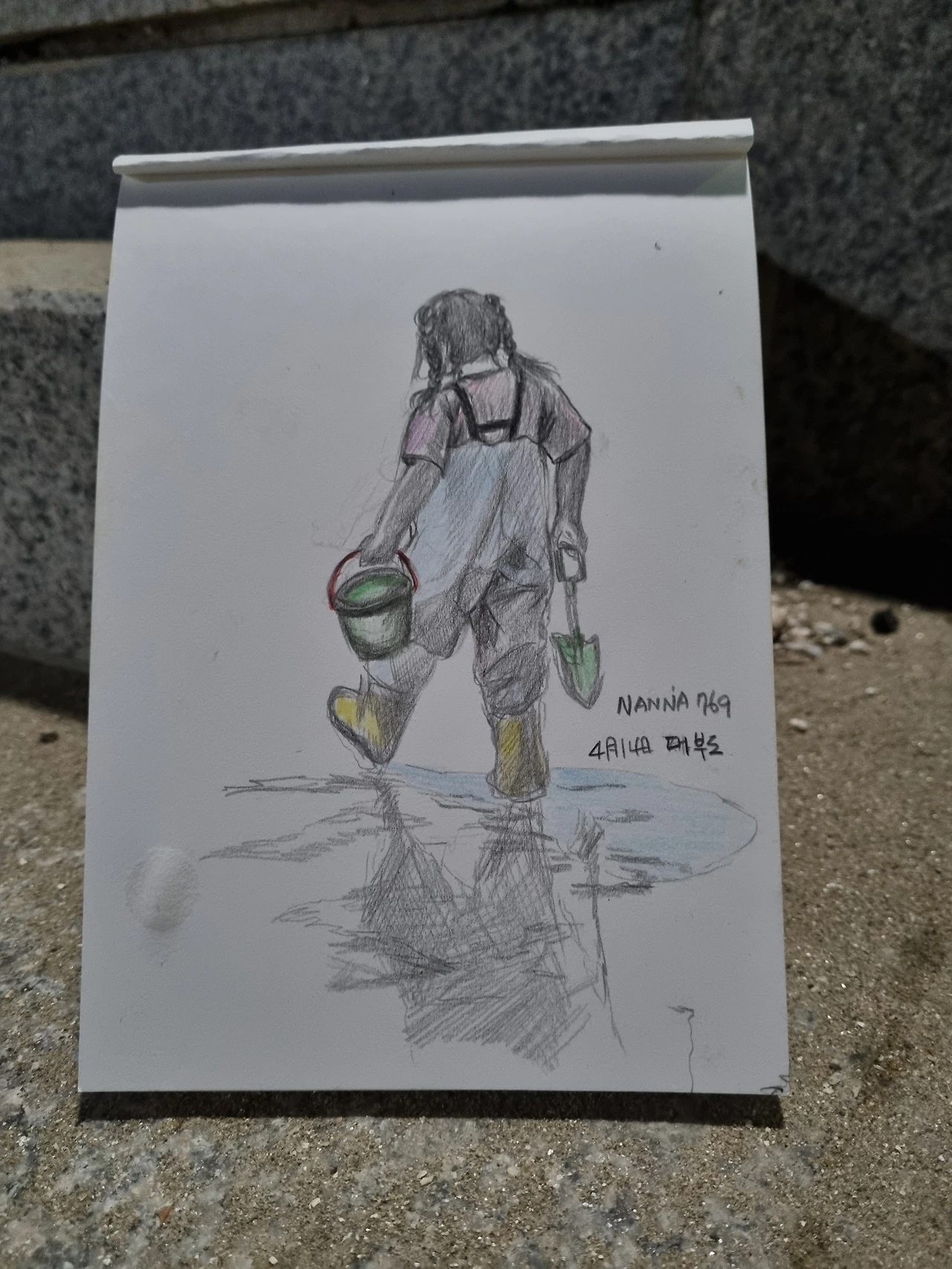 오후 4시까지는 첫 번째 여정지인 대부도에서 게도 잡고 새우, 소라게, 조개를 잡으며 놀았습니다.