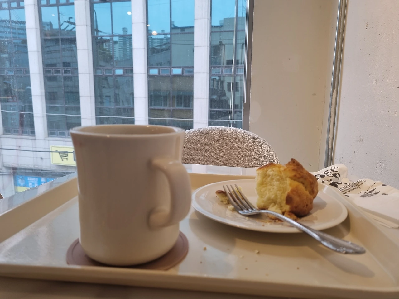 오래된 건물을 개조해서 만든 vvs museum 카페에서 100명의 작가들이 한 작품씩 전시를 합니다. 텃밭을 들러 잡초도 제거해 주고 맛있는 상추와 아욱도 잔뜩 따온 후에 지하철을 탄 거라 도착했을 때는 늦은 오후였습니다. 오후 3시이후에 커피를 마시면 잠이 안 올까 걱정이 되기도 했지만, 카페에 와서 커피는 필수라 따뜻한 아메리카노와 스콘을 주문하고 그림을 전달했습니다.