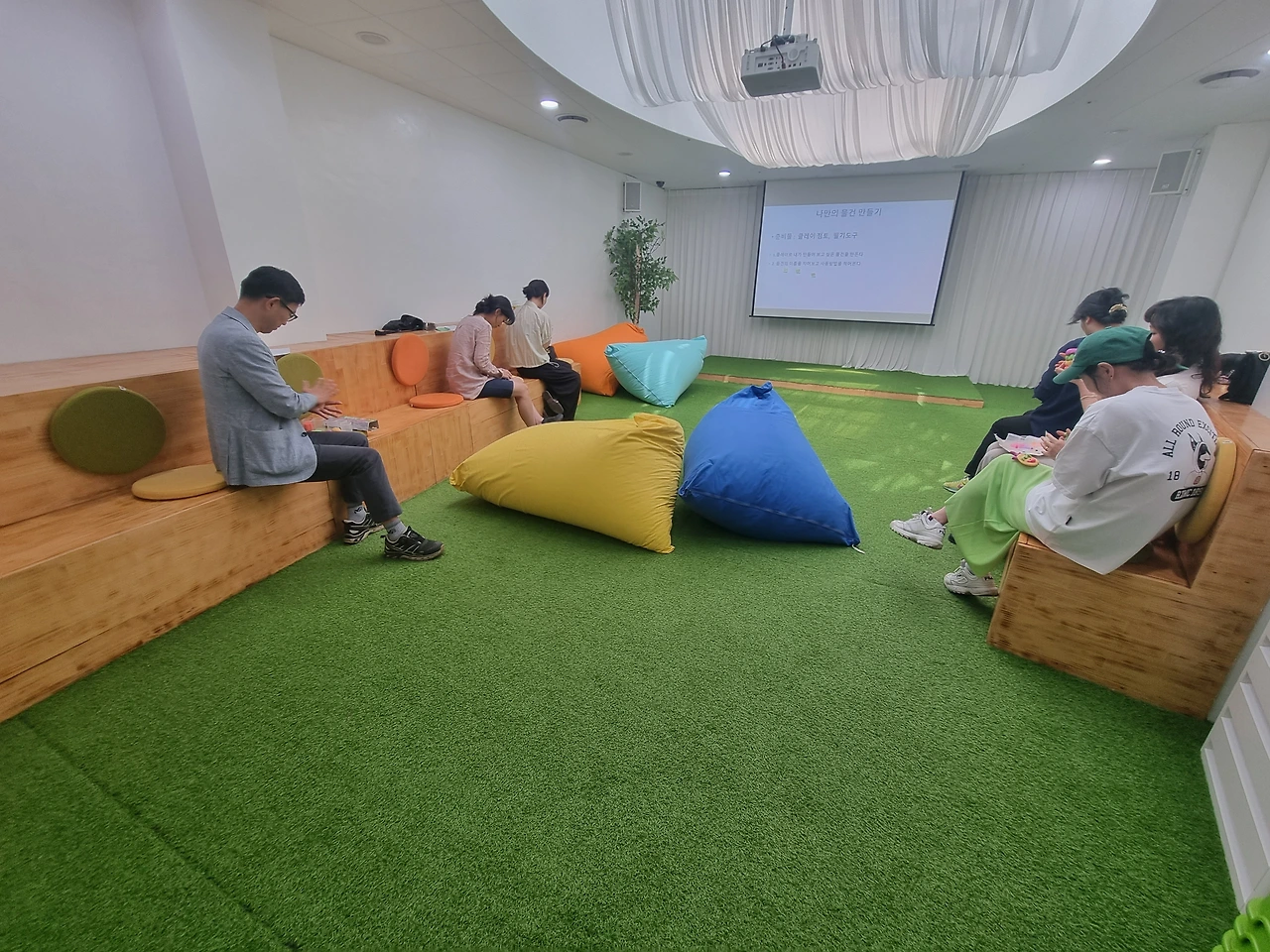 이른 더위가 조금 누그러지나 싶더니 요 며칠 하루하루 더 무더워지고 있습니다. 오늘은 지난주에 공지했던 그림책 수업이 있는 날입니다. 모두가 다른 지역에서 오시고 하는 일과 나이, 성별도 다르다 보니 처음 어색한 분위기가 있을 법도 했지만 수업하는 내내 박수도 치고 이야기도 나누며 즐겁게 1시간 30분 수업을 마쳤습니다.