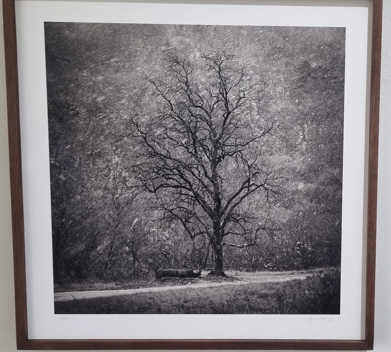 김춘수 시인의 꽃이란 시에서 <내가 그의 이름을 불러주었을 때 그는 나에게로 와서 꽃이 되었다>라는 구절처럼 <고즈넉한 소란>이라는 주제로 사진을 감상해 보니 사진 속에서 바람이 부는 것 같고, 나뭇잎이 흔들리며 내는 강물 같은 소리가 들리는 듯도 하고, 한겨울 눈이 내리는 침묵 속의 소란스러움도 느낄 수 있어서 좋았습니다. 또 작가님이 평면적인 사진을 3차원적으로 느낄 수 있게 하기 위해 종이 하나까지 고심하며 인화를 했다는 말씀에 작품에 대한 열정과 정성이 느껴져 더 특별하게 보였습니다. 늙은 감나무를 찍기 위해 그 나무와 가장 잘 어울리는 폭설이 내리는 날을 기다려 무려 5번이나 찾아가 겨우 찍을 수 있었던 사진은 작가님께서도 애정이 깊어 <엄마>라는 제목을 붙이셨다고 합니다. 그렇게 작품에 대한 이야기와 서로의 감상과 근황을 나누고 다음을 기약하며 헤어졌습니다.