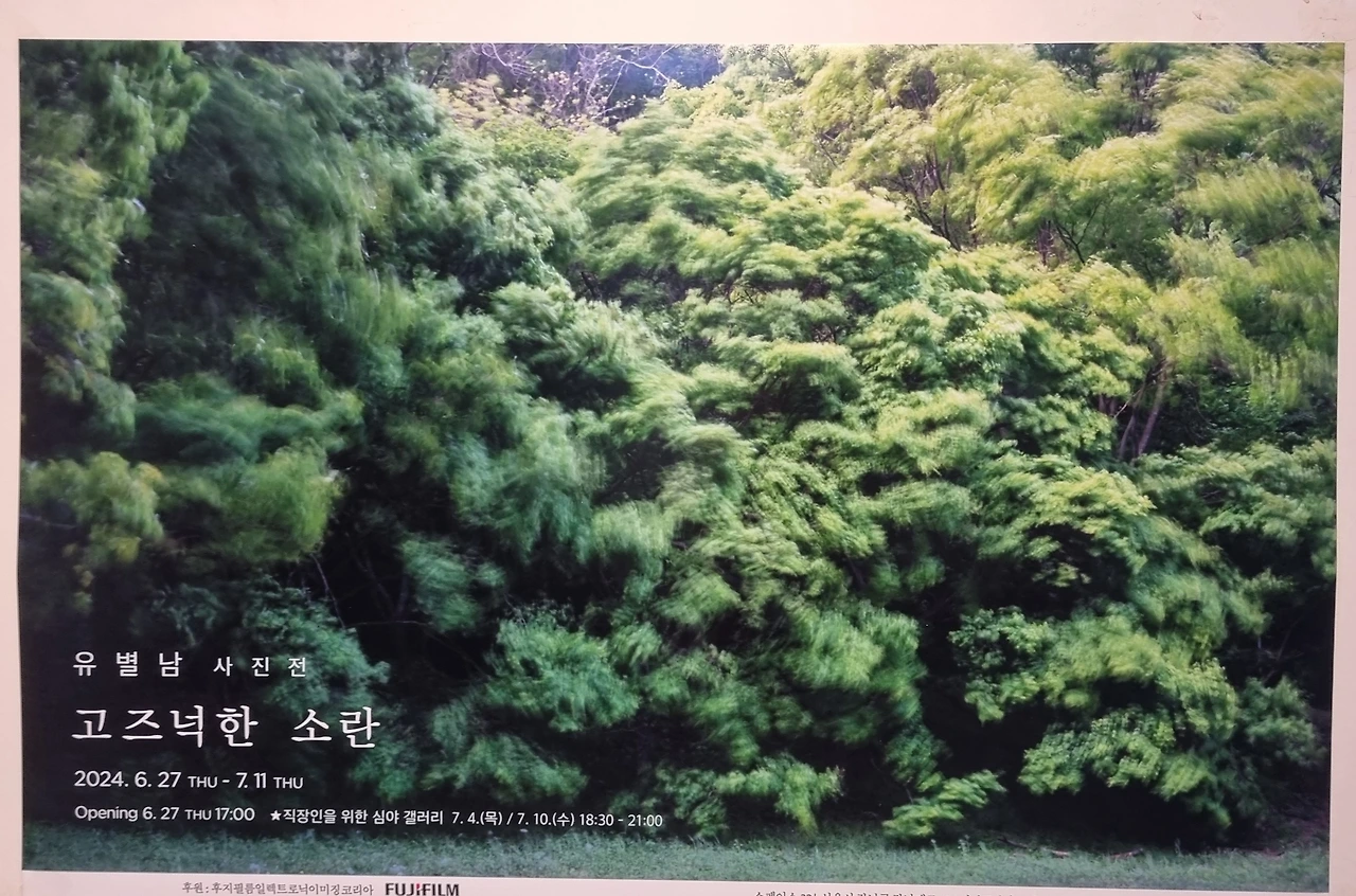 Kbs큐레이터 과정을 함께 수강했던 유별남 작가님 사진전에 다녀왔습니다. 아카데미와 대학에서 강의하시면서도 거르지 않고 매 번 개인전을 통해 건재함을 보여주시는 작가님을 뵙고 이야기 나누며 많은 것을 배우게 됩니다. 오늘이 전시회 마지막날인데도 전시실이 북적북적했습니다. 한편에 커피를 마실 수 있게 의자와 테이블이 마련되어 있어서 함께 전시를감상했던 분들과 깜짝 스몰토크 시간도 가졌습니다. 중앙대에서 사진 과정을 이수하고 계시는 머리 희끗희끗하신 분들과 전시를 빠짐없이 찾아다니시는 멋쟁이 74세 어르신까지 처음 만났는데도 서로의 생각을 자유롭게 나누며 즐거운 시간을 보냈습니다. 덕분에 유별남작가님과 국어선생님으로 퇴임하신 분께서 즉석에서 저의 시화집 <오늘을 완성한 시간 >을 구매해주시기도 했습니다. 나중에 친필 싸인해 달라는 유별남 작가님의 말씀에 쥐구멍이라도 찾아들어가고 싶은 부끄러움을 느끼기도 하고 74세 어르신과는 시간이 맞으면 덕수궁 국립현대미술관에서 하는 자수전에서 다시 뵙자고 약속 아닌 약속도 했지요. 전시회를 동행했던 큐레이터 이지아 님은 그림책 수업을 수강하고 싶다고 하셔서 점심을 함께 하며 이야기를 나눴습니다.