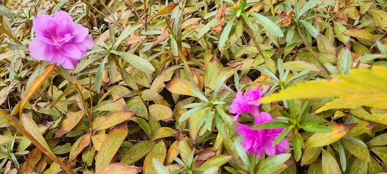 요즘 아르바이트를 하는 병원 바로 앞에는 작은 공원이 여럿 있다. 자전거로 출퇴근하고 있기때문에 점심시간에 주위를 돌아보다 작은 언덕 위에 있는 공원을 둘러보았다. 아기 자기한 숲길이 있고 정상께에는 공연장도 있었다. 언덕 둘레 자작나무도 보이고 철쭉 군락도 있었는데 그 가운데 연분홍 꽃잎을 활짝 펼쳐두고 계절을 잊은 꽃도 있었다. 안쓰럽기도 했지만 반갑기도 했다. 두 계절이나 기다려야하는데 잠깐이라도 볼 수 있음이 그렇고 비록 때를 잘 못 선택했을지언정 촉각을 세우고 자신이 피어날때를 긴장하며 한순간도 놓치지않으려는 자세가 그랬다. 봄이 아닌 가을에 피었다고 해도 철쭉은 철쭉이다. 꽃은 꽃이고 비록 본 생보다 짧을지언정 분명 생애 한번 자신을 드러낼 기회를 놓치지않으려 노력한 결과일것같아 오히려 아쉬움에 더 오래 보게 된다.