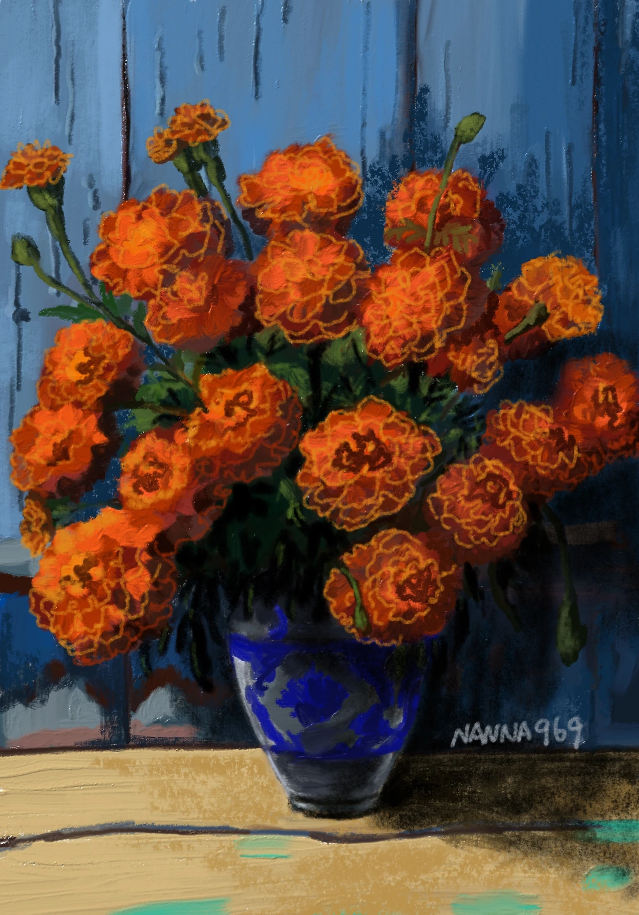 메리골드의 꽃말은 '반드시 오고야 말 행복'이라는데 이건 운명론이 아니라고 생각한다. 언제고 자신의 때를 놓치지 않고 꽃을 피워내는 메리골드. 시금치보다 루테인성분이 4배나 많아 눈건강에 좋다고 한때 유행처럼 차로 우려 마셨던 적도 있었다. 밝은 눈을 가지고 쏜살같이 달아나는 기회를 붙잡아야 한다. 그렇게 자신을 기르고 하루를 단단히 채우다 보면 행복은 정말 반드시 오고야 말 것이라고 믿는다.