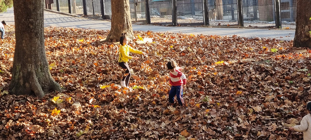 하지만 먹은 만큼 한시도 쉬지 않고 뛰어다니고 말하고 장난치는 두 아들은 한 시간에 한 번씩 배가 고프다며 먹을 것을 찾는 하이에나가 된다. 산속에 있는지라 곳곳에 낙엽이 쌓여있는 곳이 많았는데 그때마다 낙엽 속을 구르고 달리고 던지고 누우며 노는 아이들이었다. 예전엔 나도 먼지 무서운 줄 모르고 온몸을 던져 놀았는데 지금은 무릎도 아프고 낙엽은 지그시 밟는 것이지 그 속에 들어가 온몸으로 놀고 싶은 생각이 좀체 들지 않는다. 대신 아이들 노는 곳 옆에 돗자리를 깔고 신랑과 둘이서 누워있었다. 하늘은 그야말로 가을 하늘이고 바람이 식혀둔 땅은 서늘했지만 쌓인 낙엽덕에 춥지는 않았다. 누워서 하늘을 본지가 언제였던가...