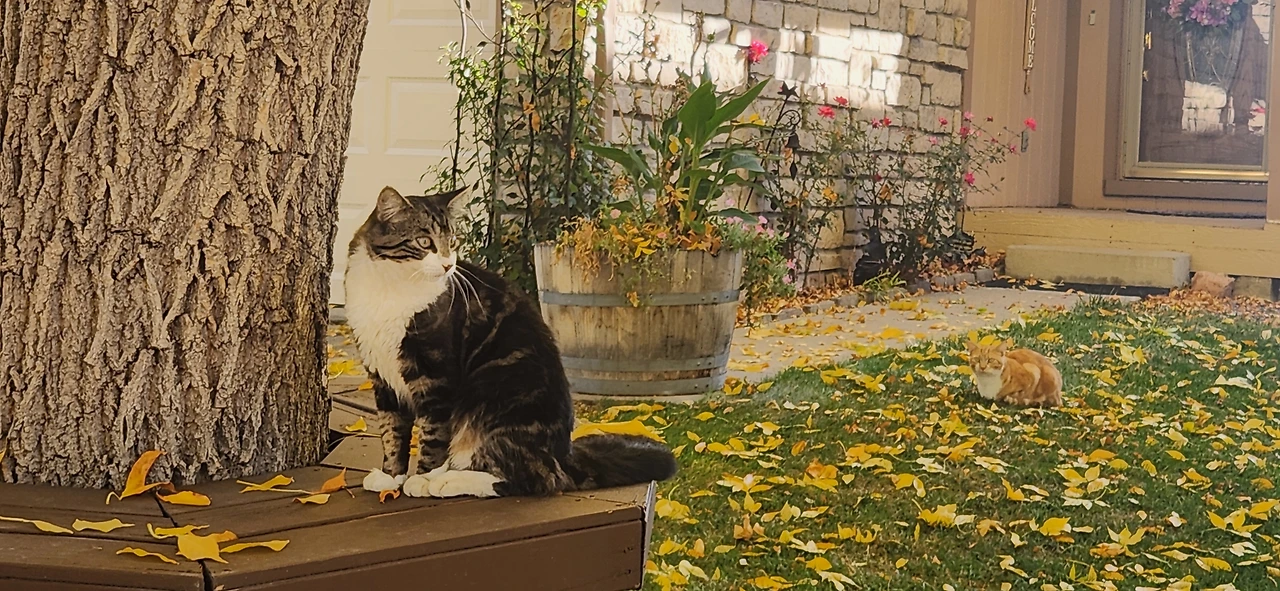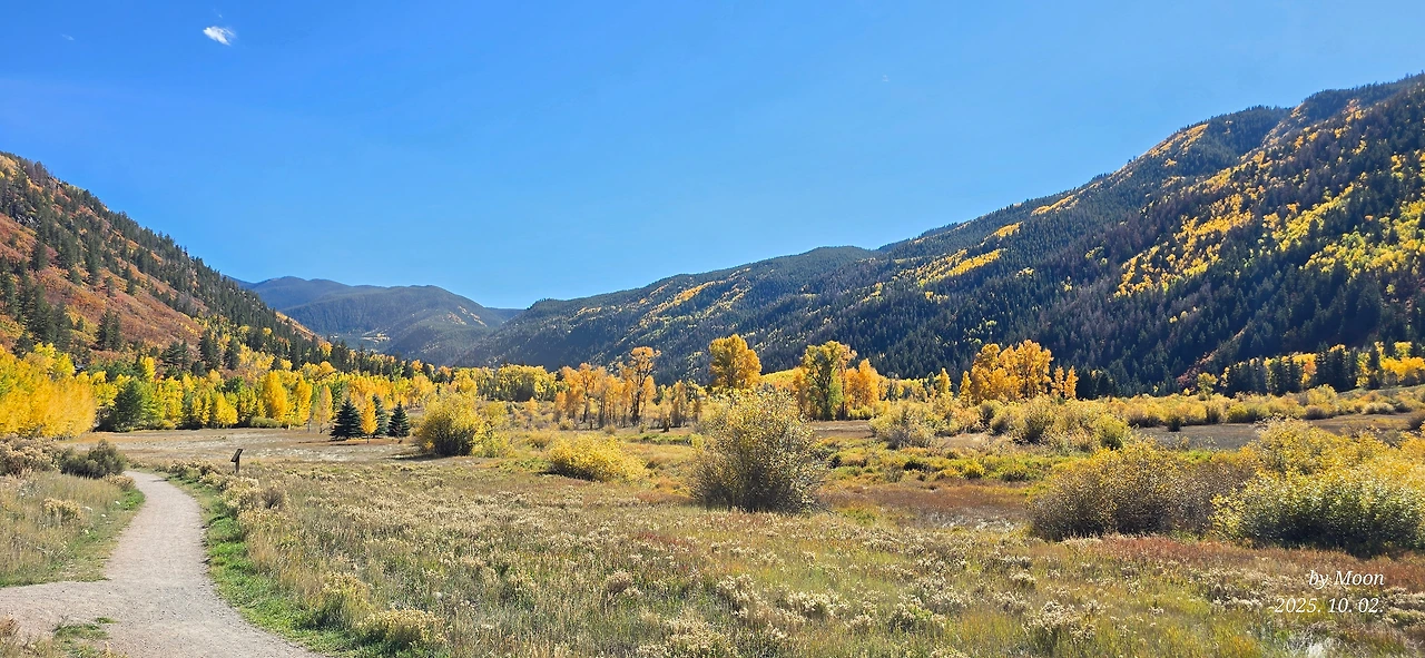 낙엽 위를 살금살금 걸으며 나무 아래에 앉았다.