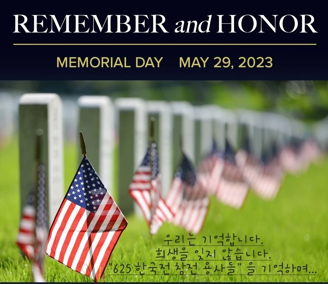 오늘 아침, 단톡방에 태극기 사진이 올라왔다. 한국은 현충일이란다. 바로 지난주, 이곳 미국에서는 메모리얼 데이(Memorial Day)를 지냈다. 두 나라의 전사(戰士)를 기리는 날이 비슷한 시기에 겹치니, 마음 한켠이 묘하게 흔들린다.