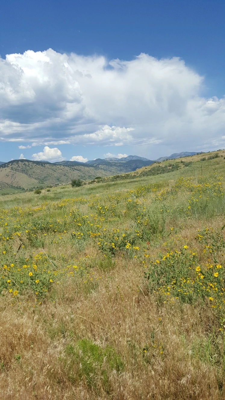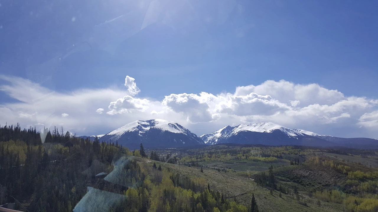 맑고 푸른 하늘 아래, 산줄기가 끝없이 펼쳐진 풍경.