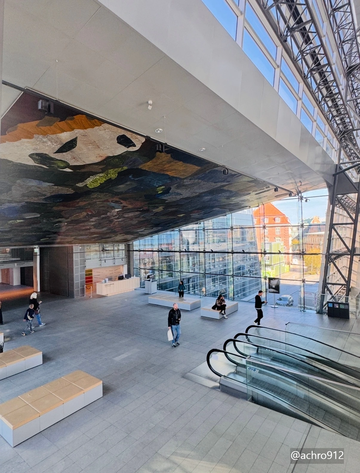 검은 화강암 사이로 난 거대한 유리 틈새, 그 안에서 에스컬레이터는 마치 운하의 물결을 따라 흐르듯 부드럽게 사람들을 실어 나르고 있었다. 밖으로는 반짝이는 운하의 윤슬이, 안으로는 지식을 향해 오르내리는 이들의 생동감이 교차하는 곳. 나는 그곳에서 덴마크 왕립도서관이 단순한 서고가 아니라, 도시의 호흡을 담아내는 거대한 심장임을 직감했다.