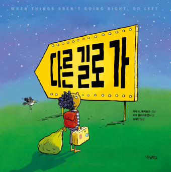 표지에는 많은 짐을 든 아이가 커다란 길 안내 표지판을 올려다보는 그림이 그려져 있다. 이 표지판에 쓰여 있는 ‘다른 길로 가’가 책의 제목이다.