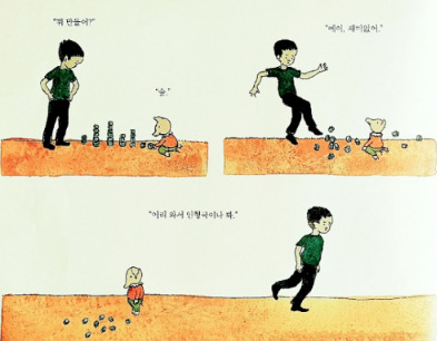 소소가 입을 옷도, 둘이 함께 할 놀이도 안다가 다 정하고 소소는 따르기만 한다. 안다 혼자 움직이고 소소는 가만히 앉아만 있는 수동적인 모습이다. 둘은 서로 마주보며 놀지 않는다. 늘 안다가 주인공이고 소소는 그저 관객이다.