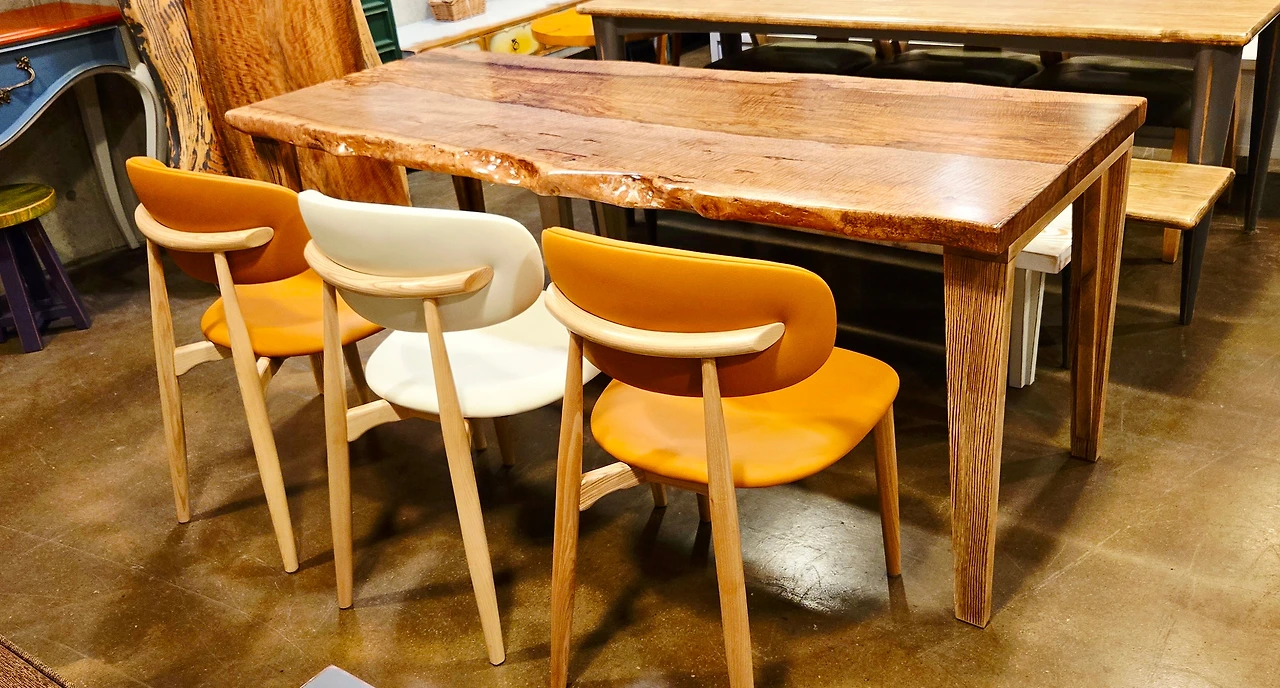 (나뭇결이 아름다운 망고나무 우드슬랩 식탁과 의자)