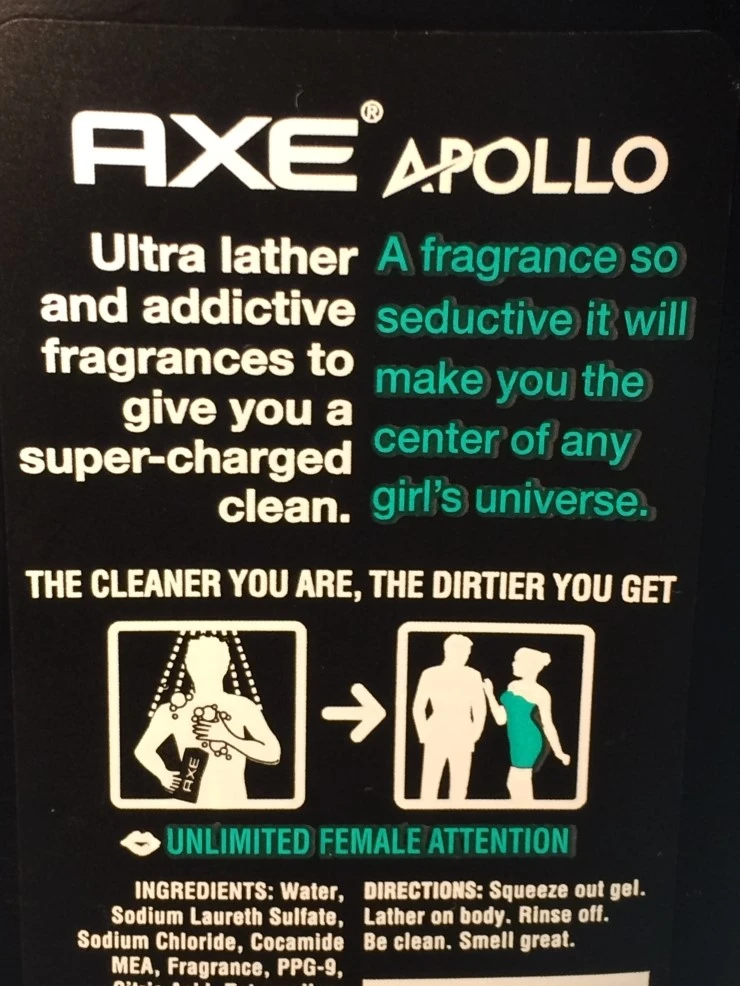 해석은 하지 않겠다. 이 제품의 슬로건. the cleaner you are, the dirtier you get, 그림까지 그려져 있다. 19금 상품이다. 이걸 믿고 이제품을 사는 남자들은 없겠지만.. 여튼.. 남자들 어딘가에 숨겨져 있는 샤워하는 이유를 담고 있는 듯 하다. 그런데, 이런식 문구는 국내에선 안통할거 같다. 뭔가 저질 같은 남자들이 쓰는 용품으로 오해 되는게 뻔해서...