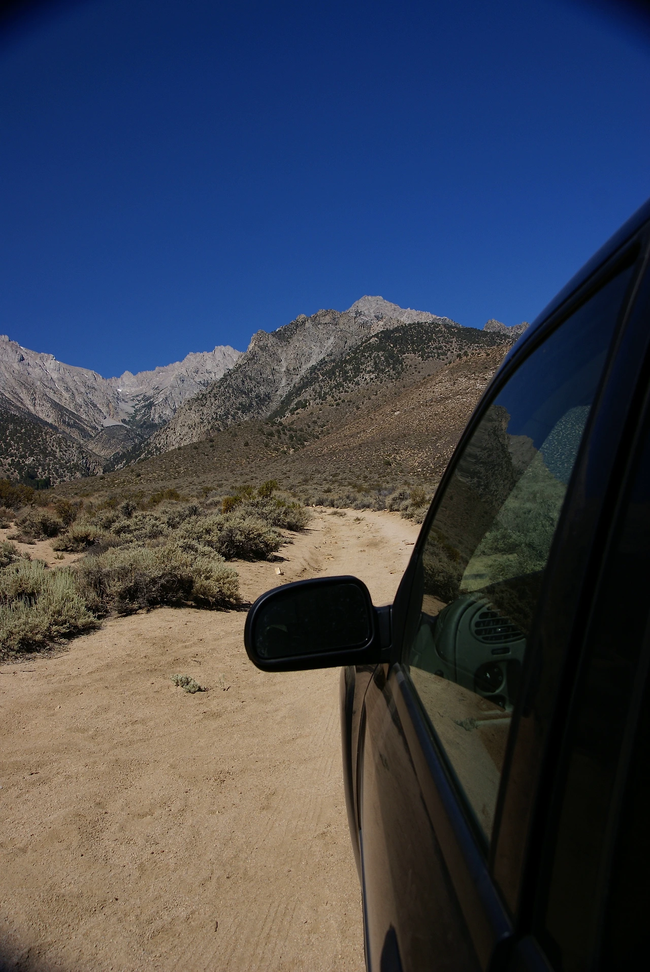 운전만 몇 시간 하다가 지쳐서 Independence에서 하룻밤을 머물 때 B&B 주인과 와인을 한잔하면서 이야기하는데 동네의 전통과 여러 가지 이야기 그리고 동네의 슬픈 사연 등등.. 이야기를 듣다가 잠이 들었었다. 다음날 아침에 일어나, 바쁘게 데스밸리를 지나 라스베이거스로 가고 싶어서 운전을 하는데... 룸미러에 비친