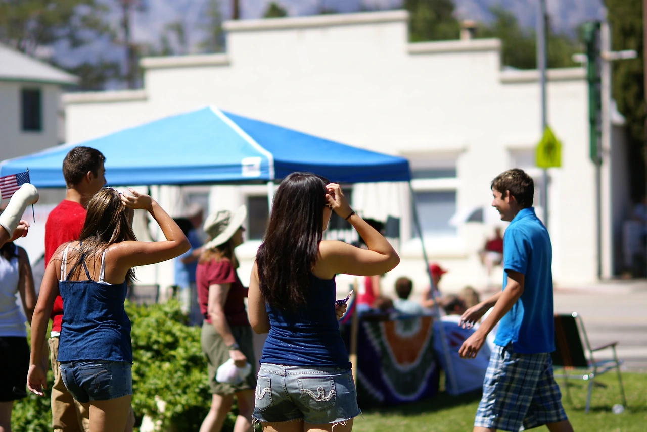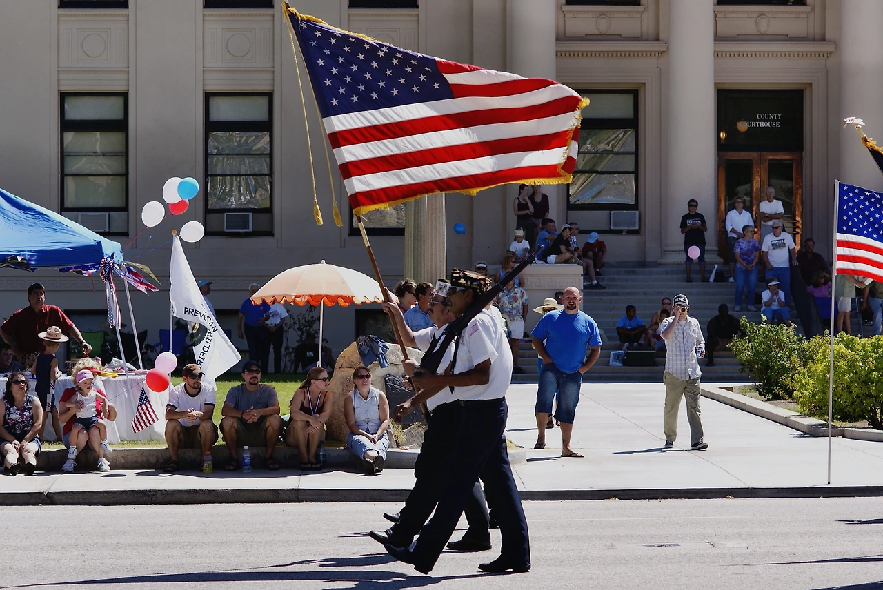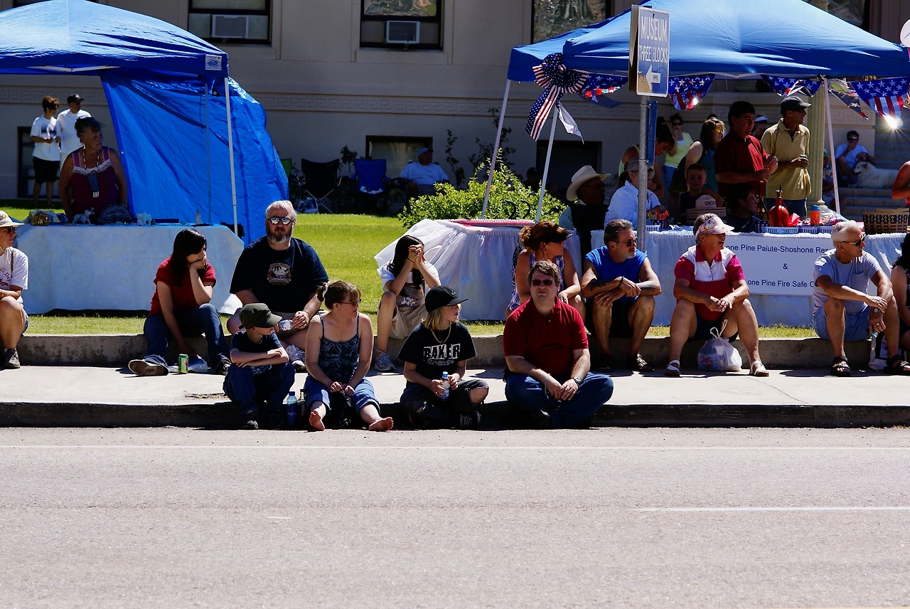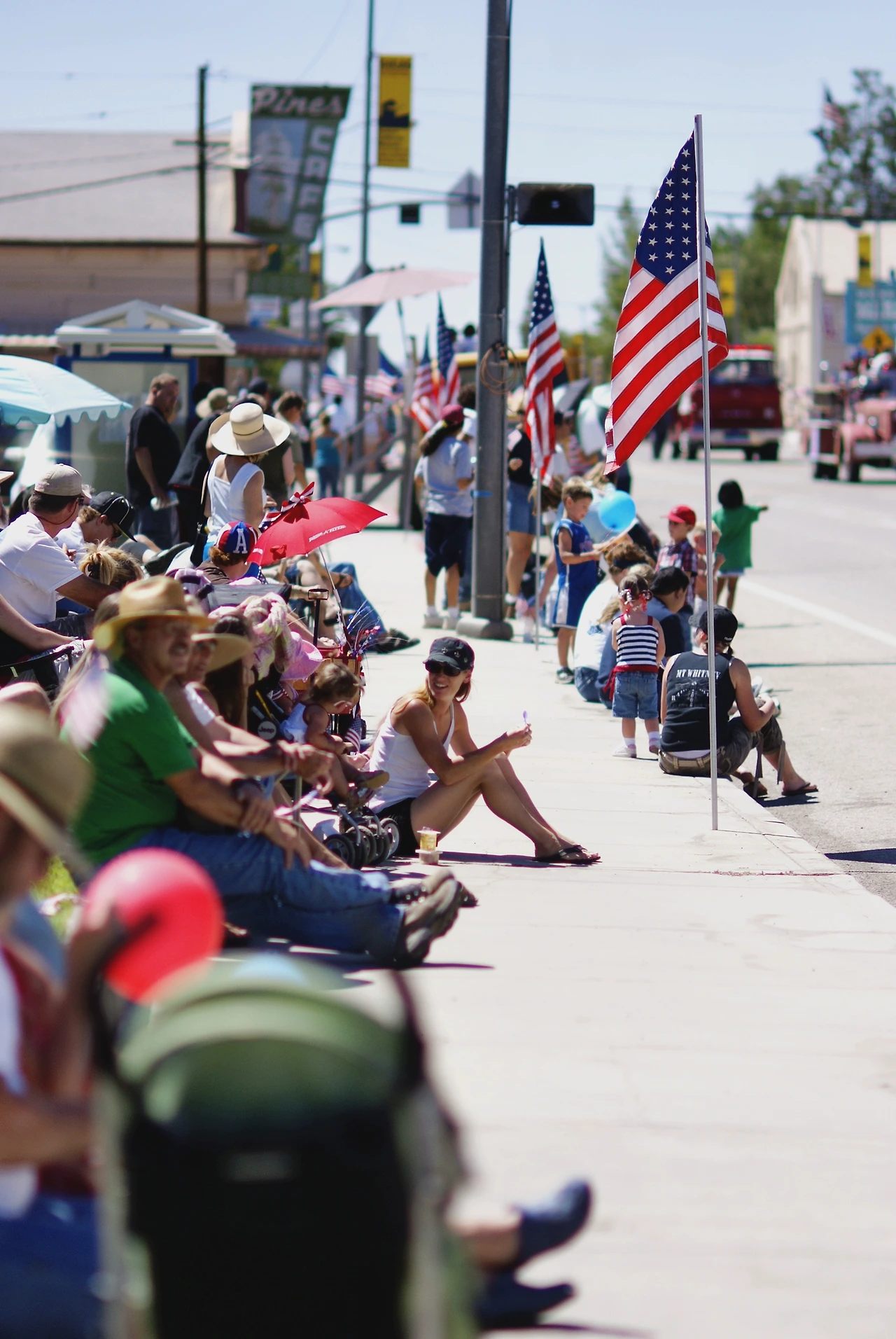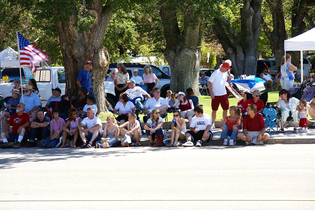 이제 사람들이 미국 독립기념일 행사를 구경하려고 옹기종기 모여 있었다.