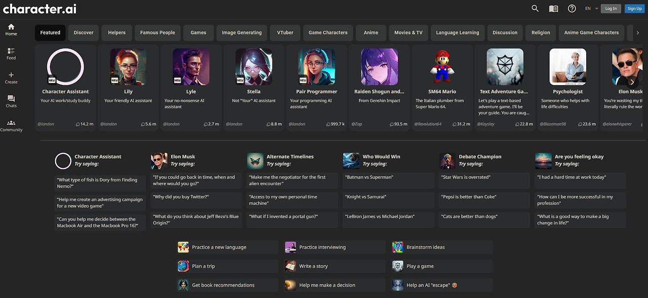 제너레이티브 AI 유니콘 기업인 Character.AI는 출시 첫 주에 170만 다운로드를 기록하며 무한한 대화 가능성을 제공하는 제너레이티브 AI 기반의 챗봇(일명 AI Companion)이 주목 받고 있다. 특히, OpenAI와는 조금 차별화 되게 Character AI는 엔터테인먼트, 교육, 아이디어 창출 등을 아우르는 애플리케이션과 개방형 대화에 참여할 수 있는 다양한 챗봇이다. 특히 자연어 대화가 가능하다고 하니 이제 외로운 사람들은 많이 이용할 듯해 보인다.
