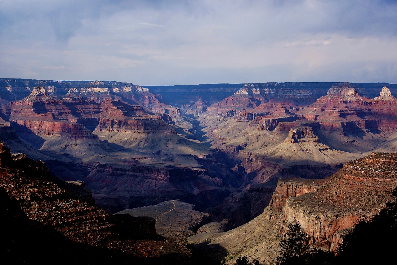 이제 강렬했던 햇빛에 전체가 반사된 그랜드캐니언이 아닌 구름사이에서 내리는 빛에 따라 음영이 생긴 그랜드캐니언의 색상은 전혀 다르게 보였다. 아침과 점심.. 시간대에 따라서 모습이 계속 변하고 있었다.
