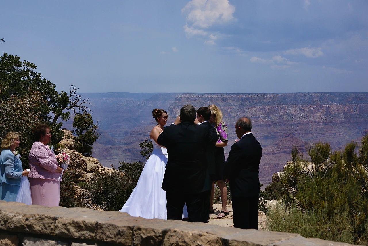 그랜드캐니언 앞에서 결혼하는 한쌍을 보았다.