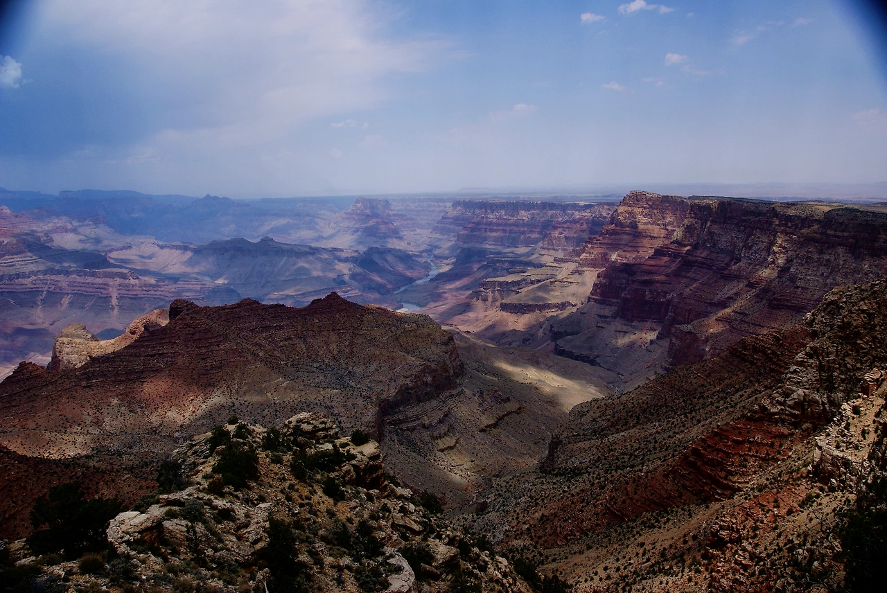 구름에 그림자가 만들어진 그랜드 캐니언의 멋진 모습이 보이기 시작했다.