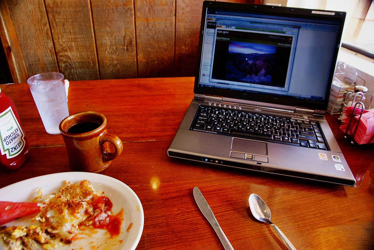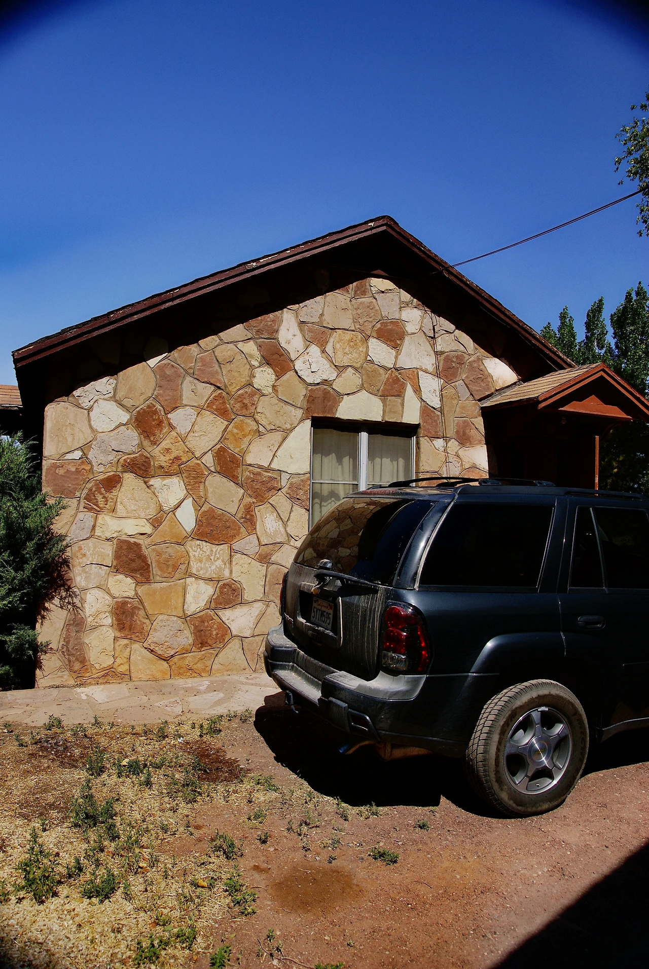 아침 날씨가 무척 좋았다. 전형적인 서부 날씨였다, 어제저녁 이미 애리조나 지역을 넘어 유타주로 들어왔다. 그랜드 캐니언을 한참 벗어났지만, 모텔 이름은... 그랜드 캐니언 모텔.. (아마 잘못 검색해서 온 사람도 많을 거 같다는 생각도 들었다.)로 모텔 주인이 이름 어그로를 끌고 있다. 이제 까지 투숙했던 모텔과 호텔보다는 시설은 많이 부족하지만.. 아침에 커피 한잔 먹으며, 사진에 보이는 플라스틱 의자에 앉아서.. 잠깐. 휴식했을 때.. 기분이 묘해졌다. 내가 한국에서 여행 온 게 아니라, 미국에 살면서 이곳에 놀러 온 듯한 느낌이었다.