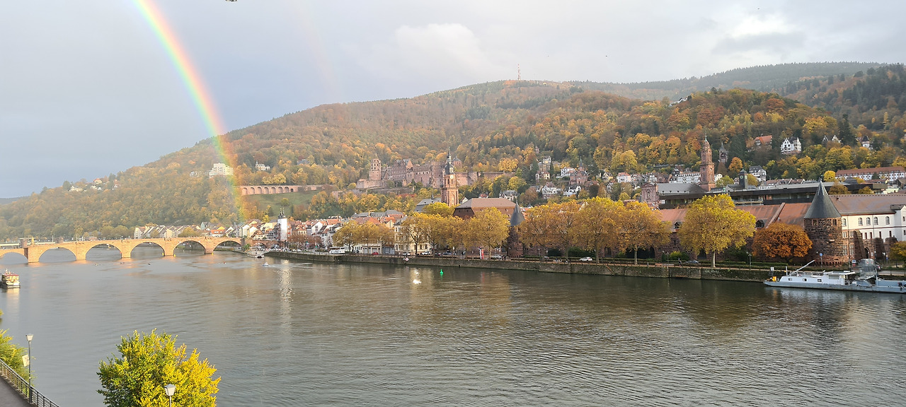 네카(Neckar) 강을 가로질러 Alte Brücke 위로 큼지막한 무지개가 떴다. 하루 종일 부슬비를 흩뿌리던 날씨가... 미안해서인지... 저무는 하루가 아쉬워서인지... 해 질 무렵이 다 되어 가는 늦은 오후 무렵... 마을 가장 아름다운 곳을 찾아서 무지개 선물을 걸어 놓았다. 그동안 본 무지개 중에 가장 크고.. 가까이.. 경험할 수 있어 탄성을 자아내기에 충분했다.