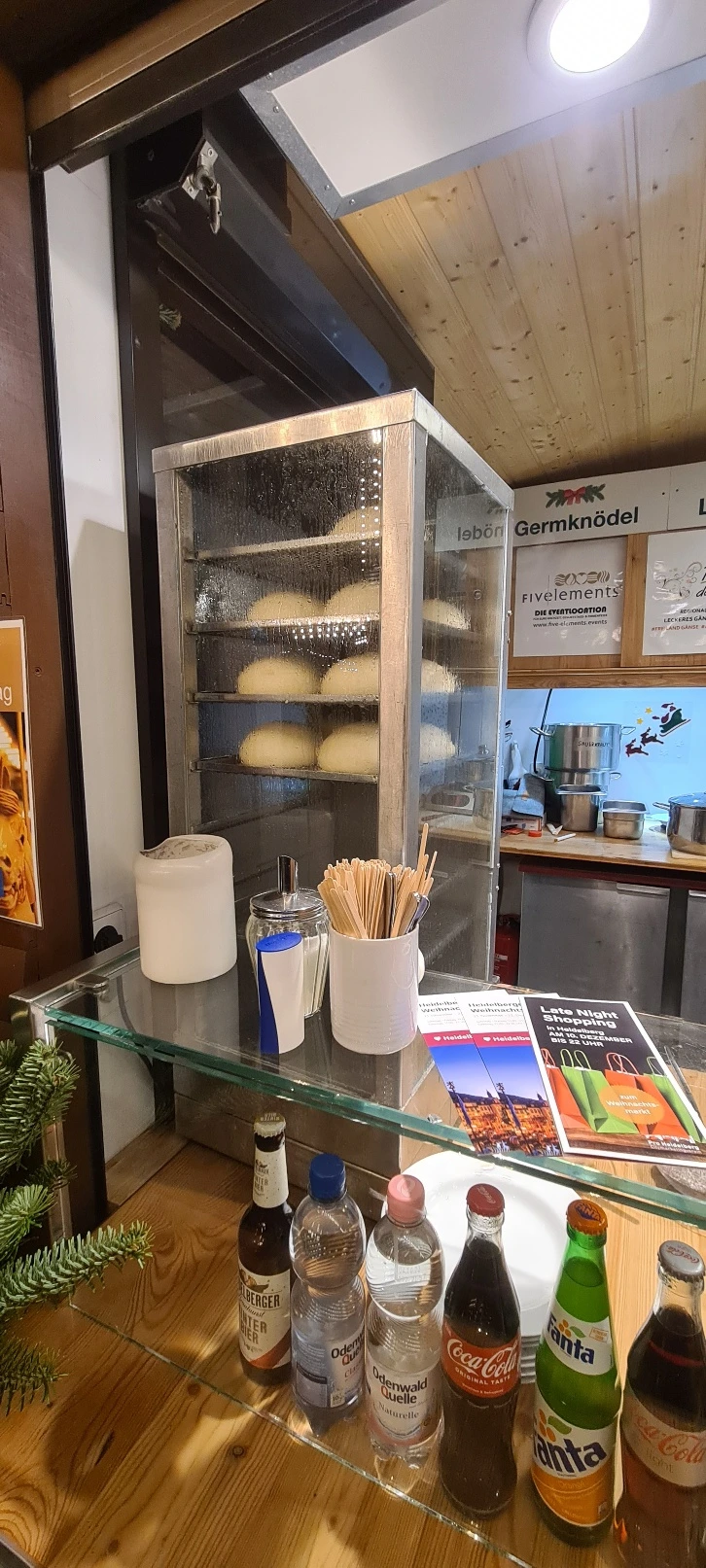 독일찐빵(Germknödel)이 진열대 찜통기에 들어 있다. 우리의 찜통기와 별반 다르지 않다.