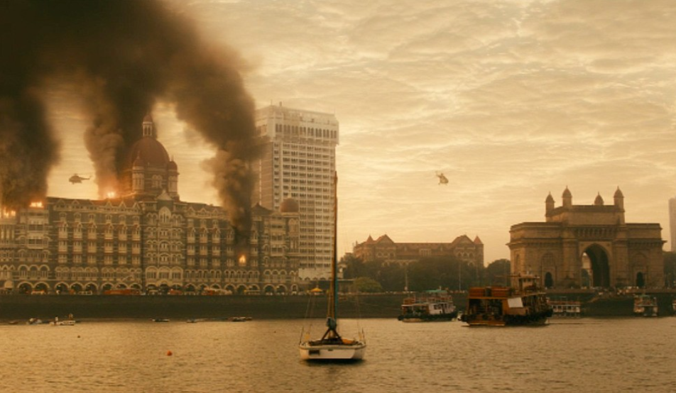 영화 속 첫 사건은 ‘트라이던트 오베로이 호텔’ 레스토랑에서 들리는 총성 소리와 함께한다. 호텔 직원들은 단순히 불량배들의 소행이라고 생각했지만 얼마 안가 ‘타지마할 호텔’로 들이닥친 테러범들은 로비에 있는 직원들은 난사하고 투숙객들에게도 무차별 총기를 난사한다.